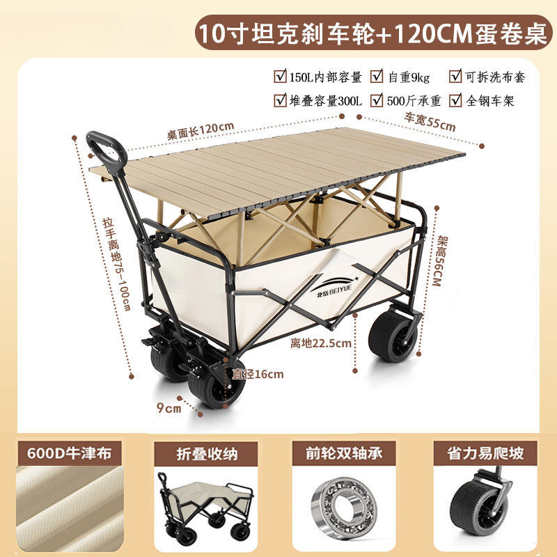 캠핑 카트, 야외 접이식 캠핑 카트, 초대형 피크닉 트레일러, 캠핑 핸드 트롤리, 범용 트롤리