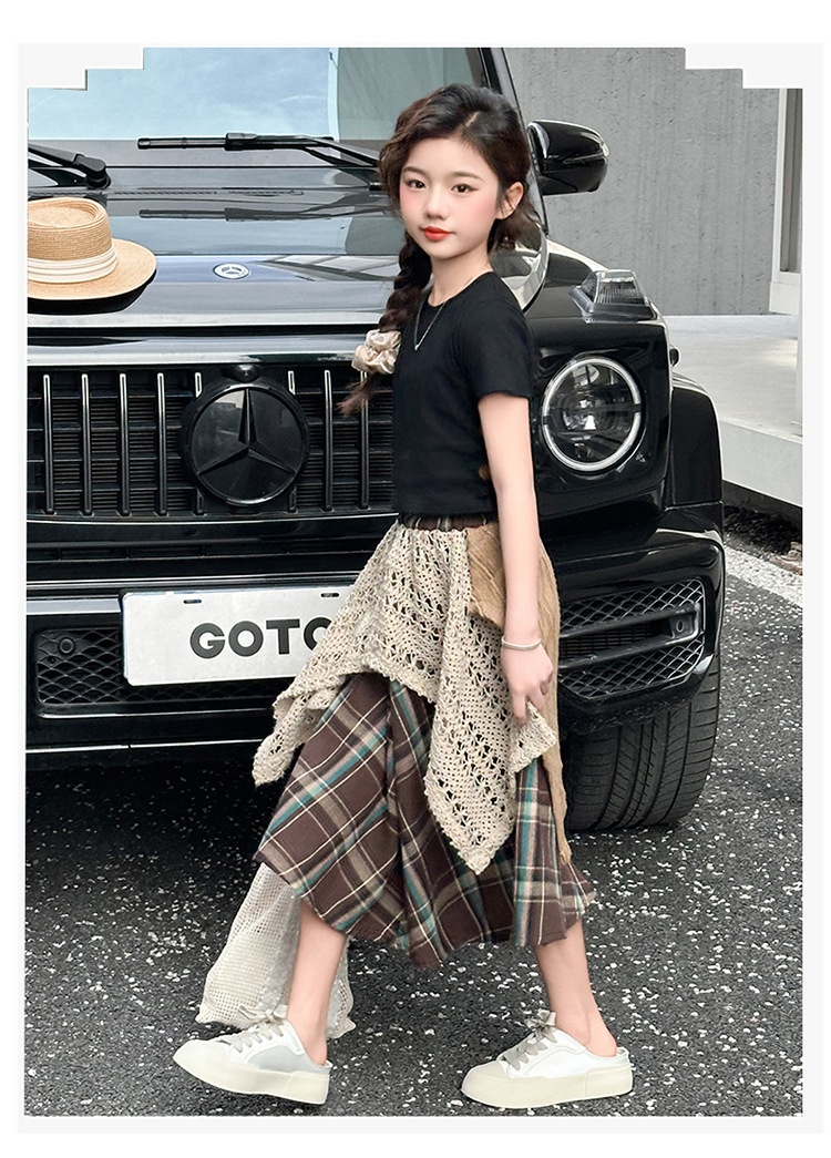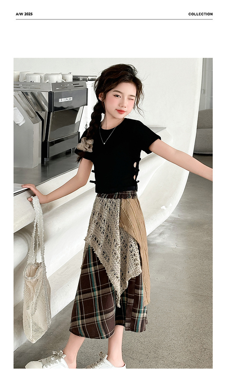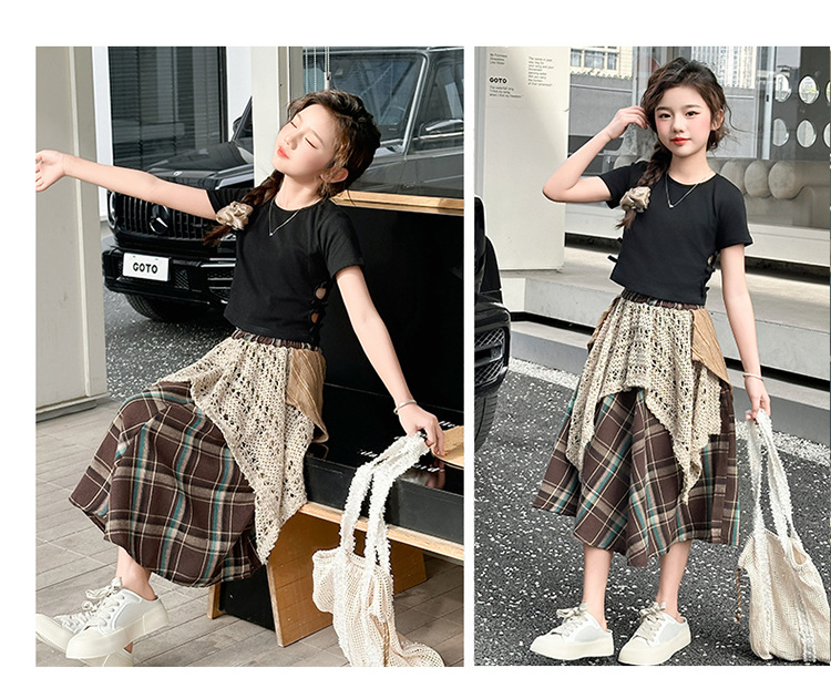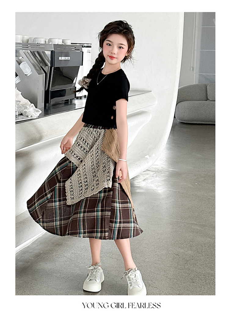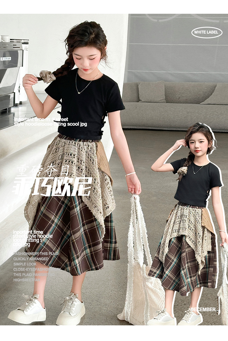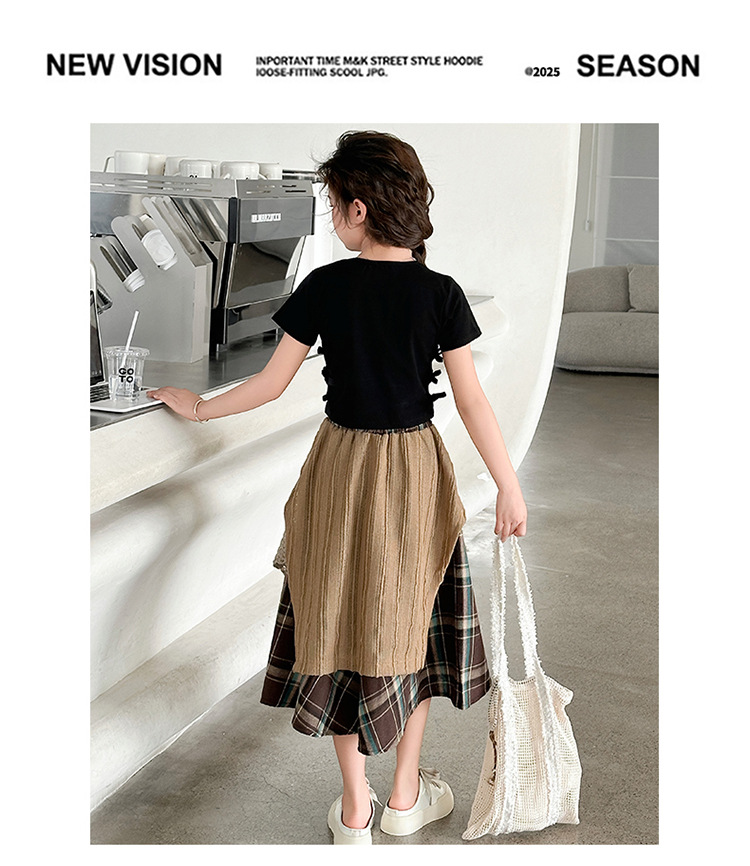 소녀 패션 캐주얼 격자 무늬 스커트 모리 스타일 세트 2025 여름 새 스타일 소녀의 유행 스커트 투피스 세트