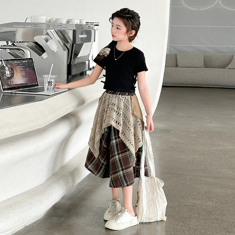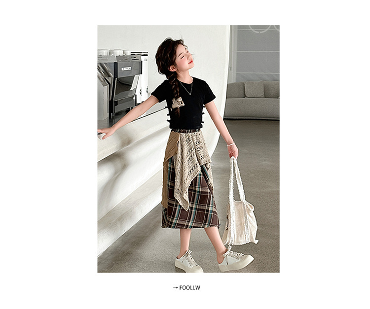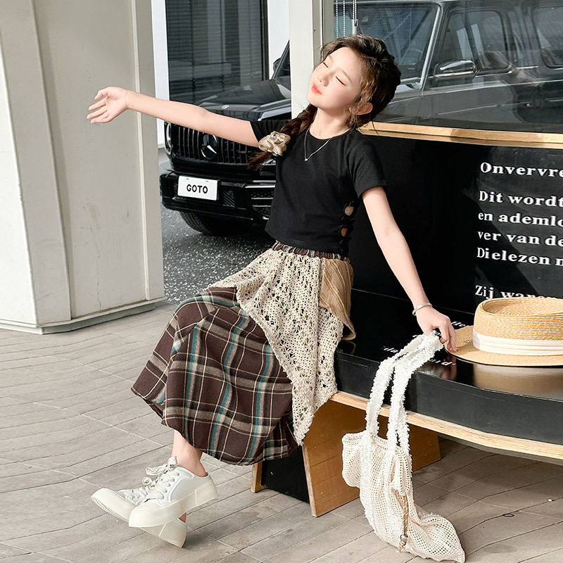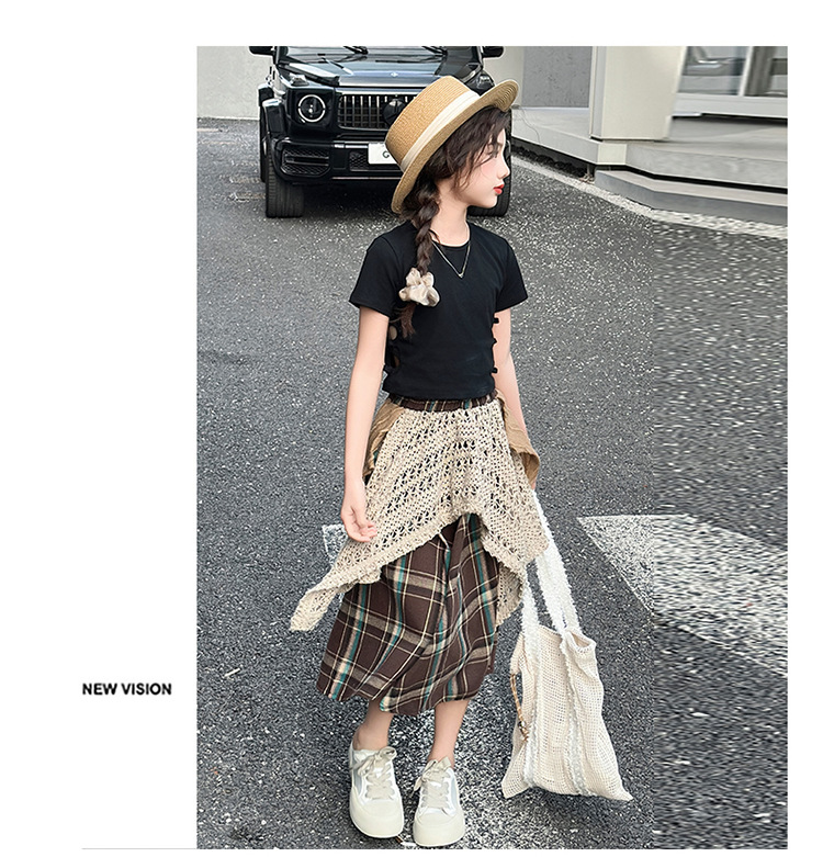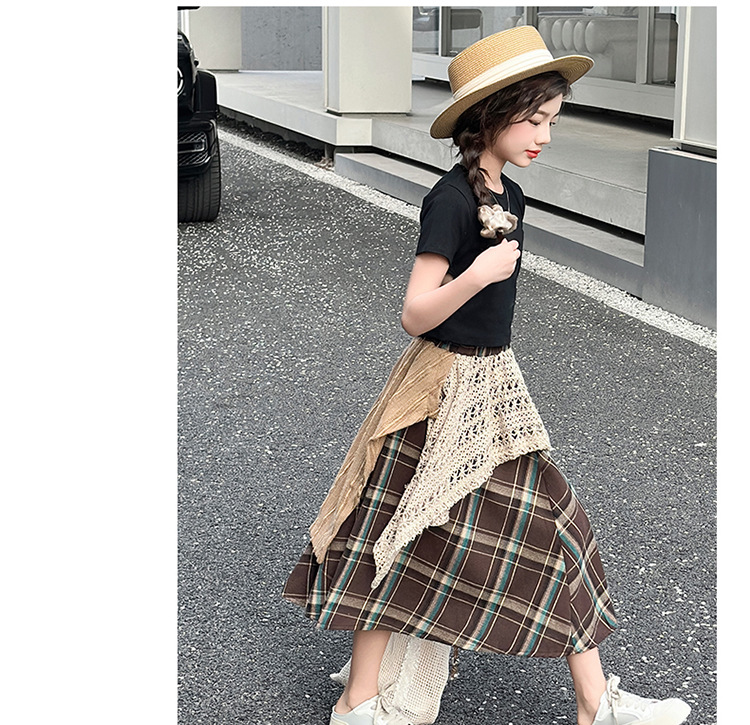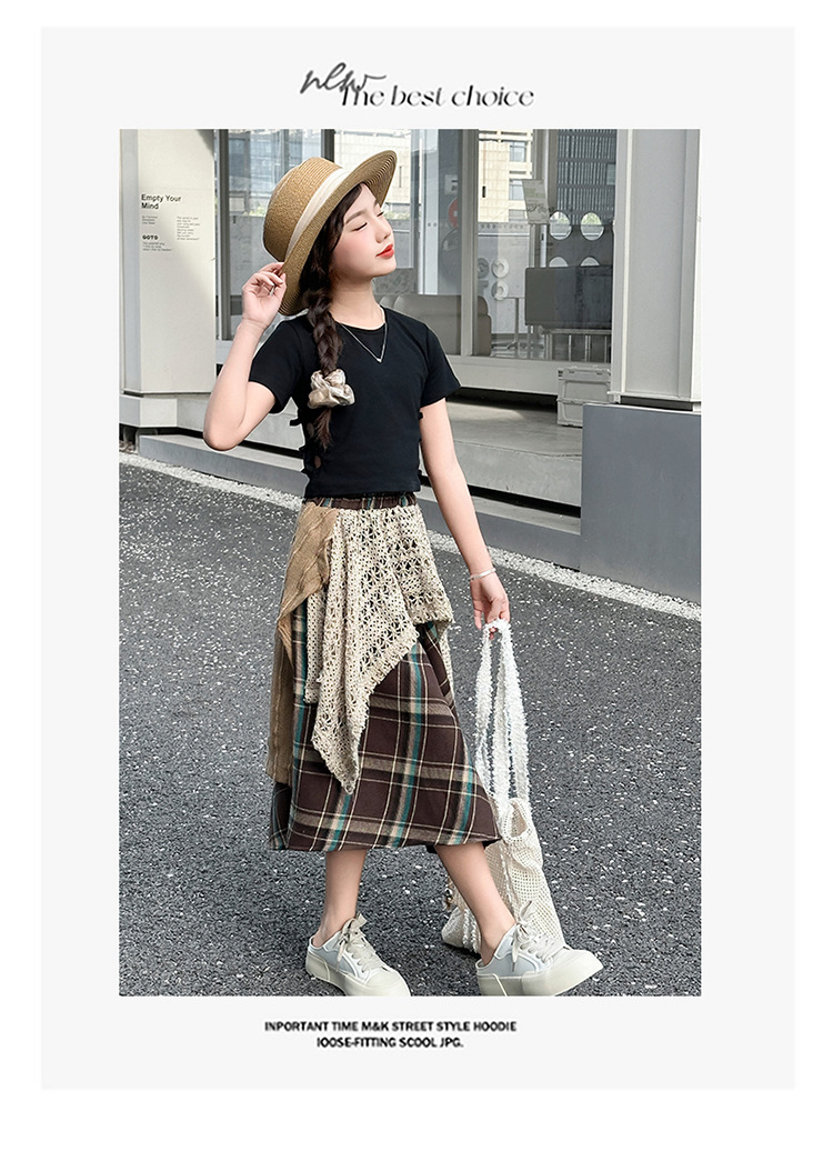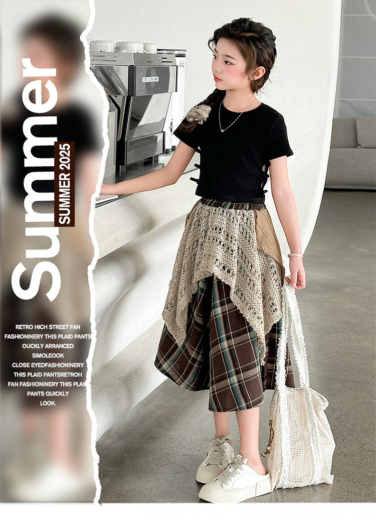 소녀 패션 캐주얼 격자 무늬 스커트 모리 스타일 세트 2025 여름 새 스타일 소녀의 유행 스커트 투피스 세트