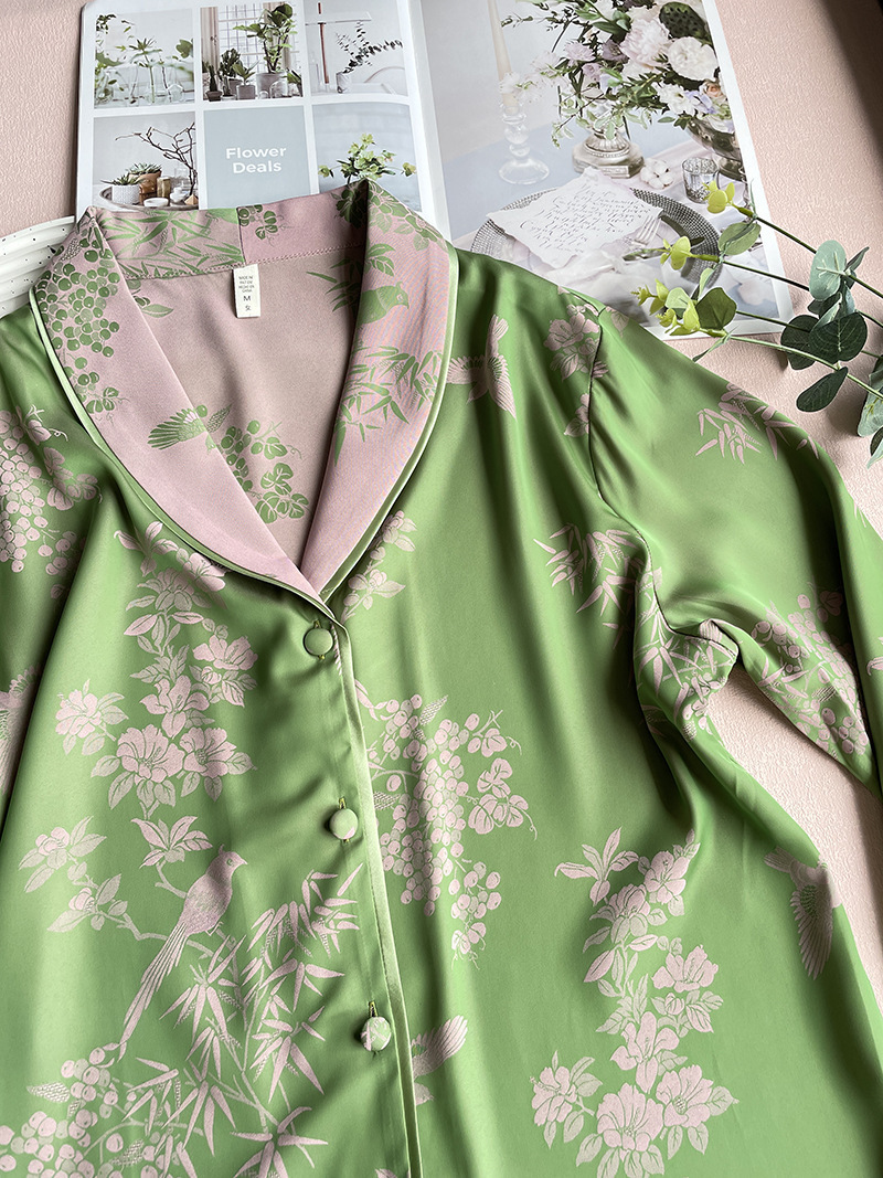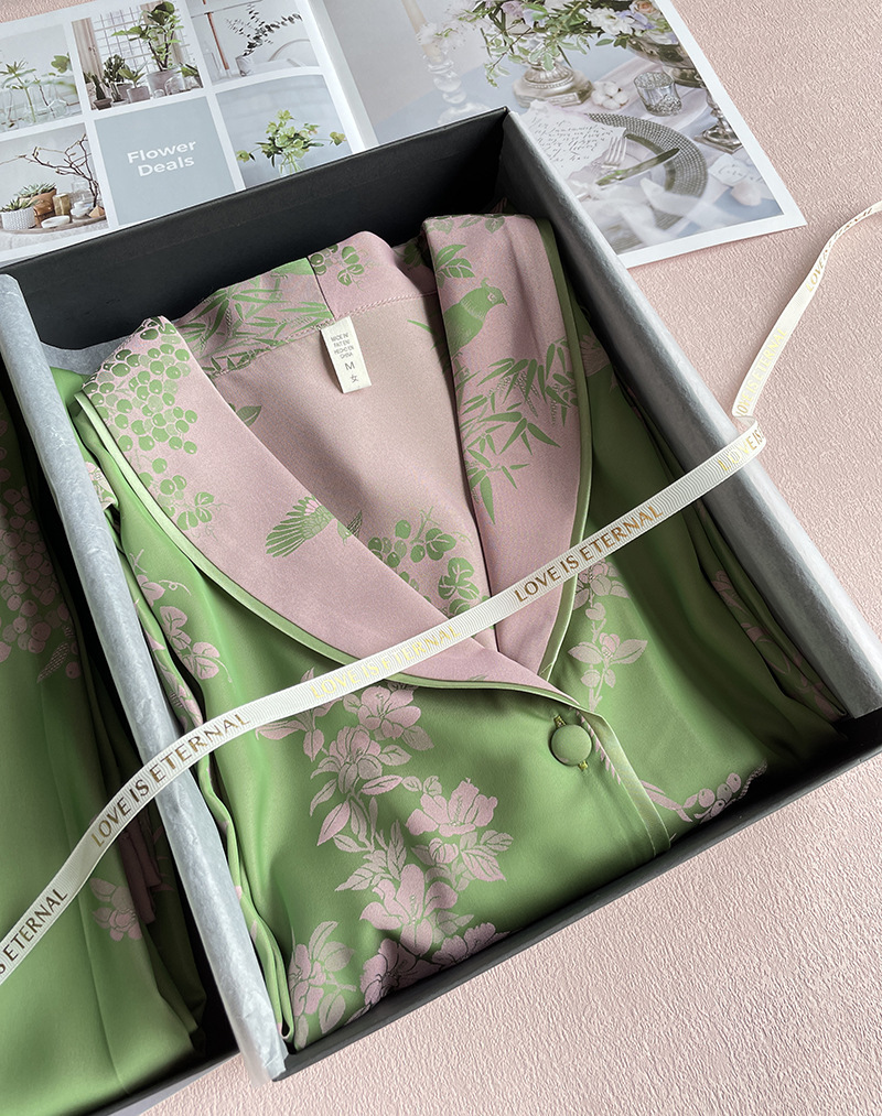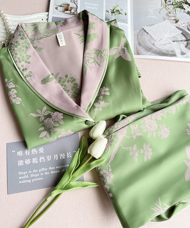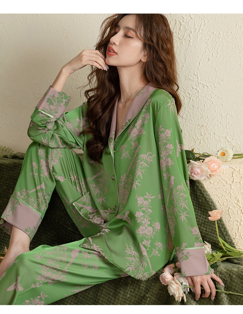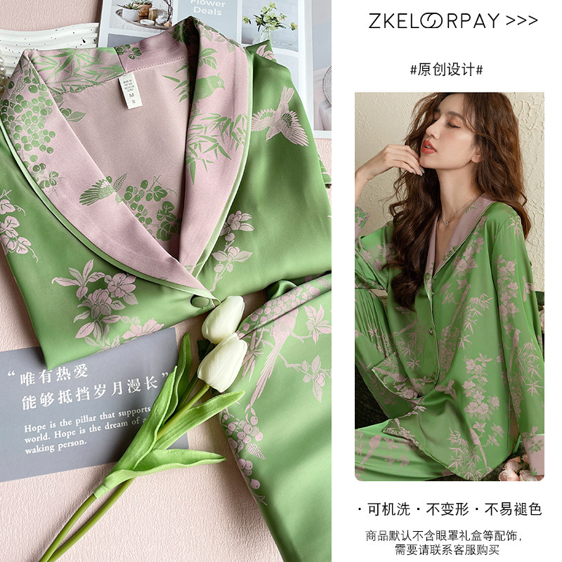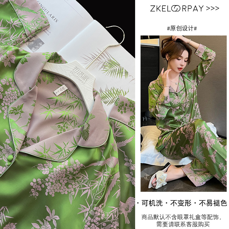 봄과 여름 새로운 아이스 실크 양이온 파자마 여성의 얇은 쿨 실크 플러스 사이즈 홈 의류 인터넷 연예인 가을