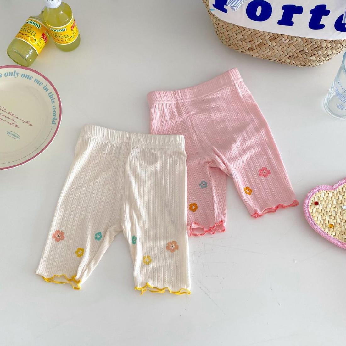여름 여아 레깅스, 유아용 패셔너블한 아동용 개성 트렌디하고 패셔너블한 산뜻한 미드팬츠 꽃무늬 귀부분 7부팬츠