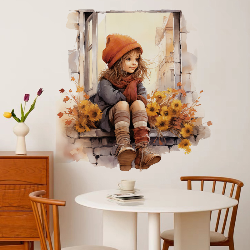 CH66006 창 어린 소녀 3D 입체 거실 침실 배경 벽 복도 입구 배경 장식 스티커