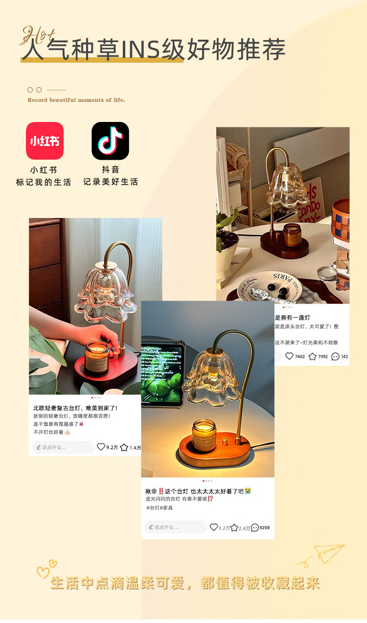 GUXEA 크로스보더 은방울꽃 향초 왁스 램프 프렌치 레트로 침실 무화향 분위기 조명 램프스토어 가기