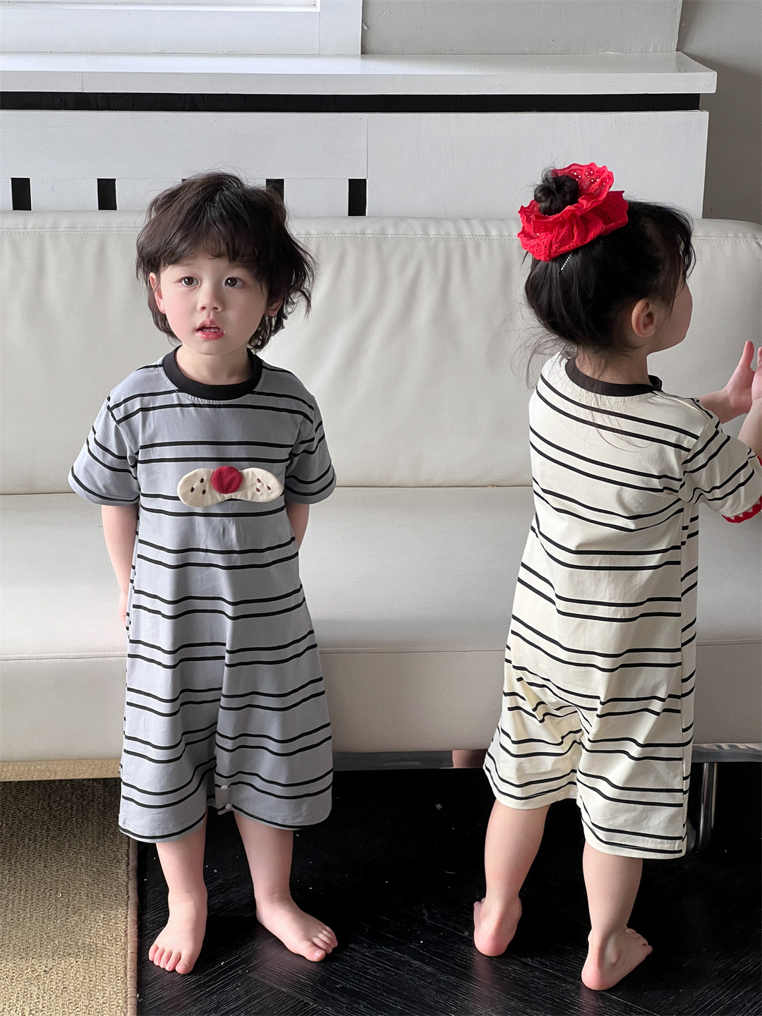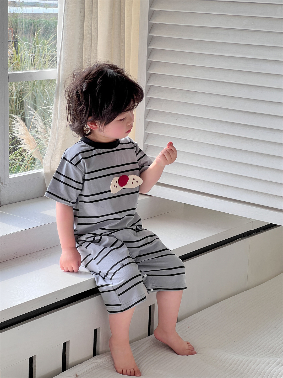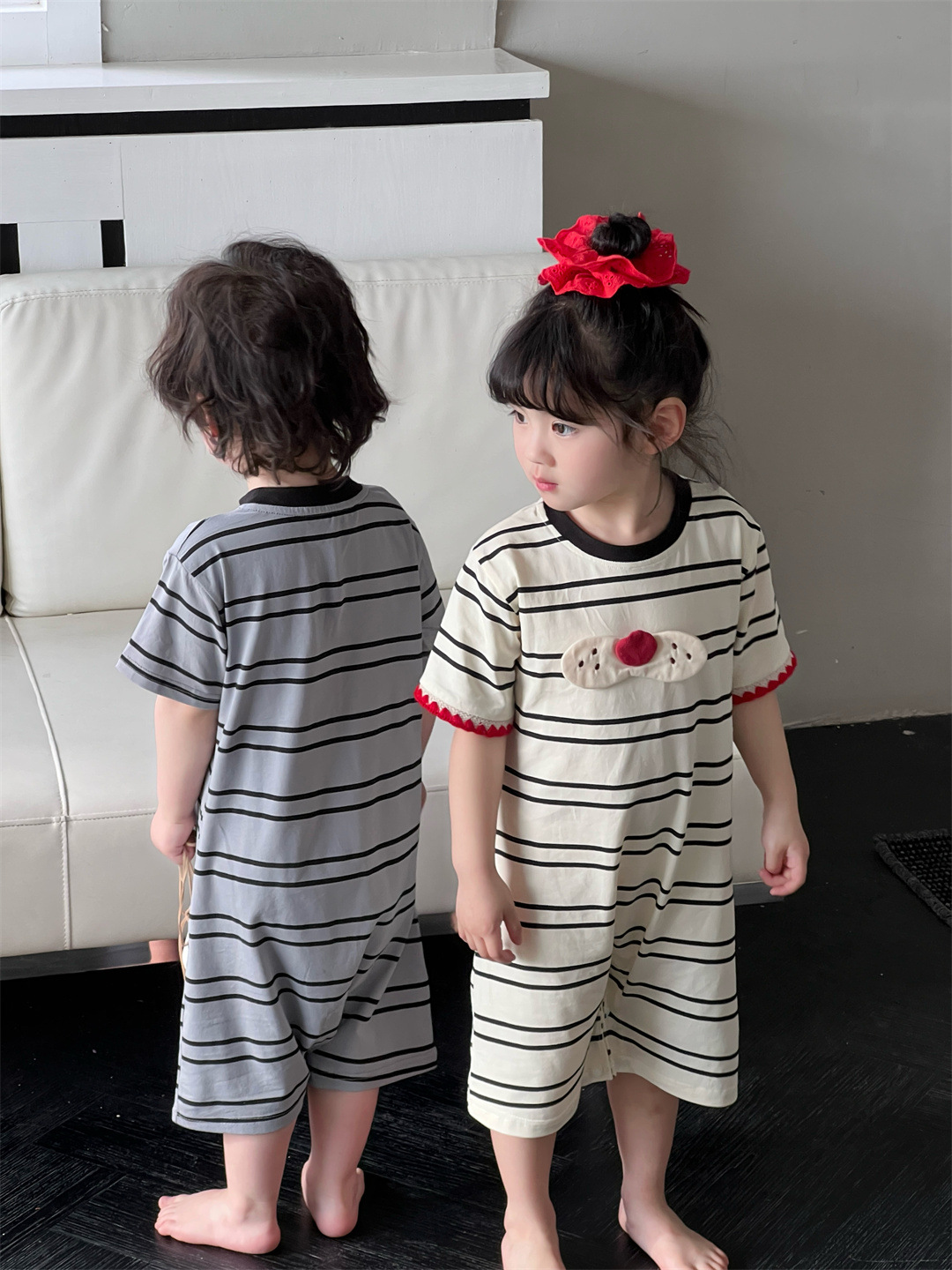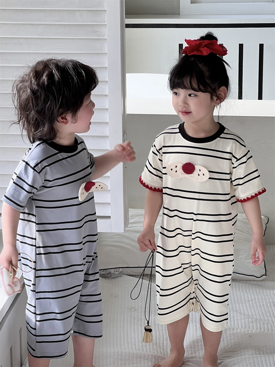 어린이 한국 스타일 느슨한 줄무늬 Jayshirt 여름 순수면 느슨한 다리 잠옷 아기의 캐주얼 반팔 홈 옷스토어 가기