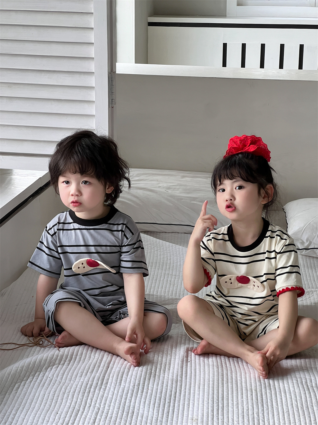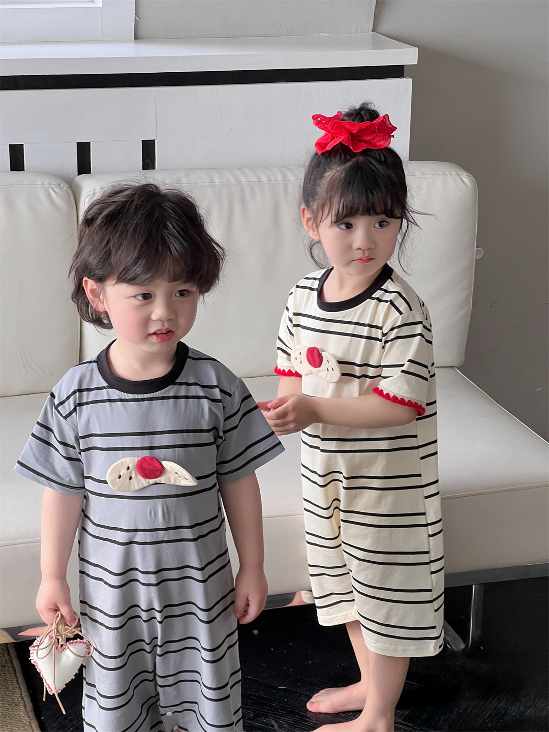 어린이 한국 스타일 느슨한 줄무늬 Jayshirt 여름 순수면 느슨한 다리 잠옷 아기의 캐주얼 반팔 홈 옷