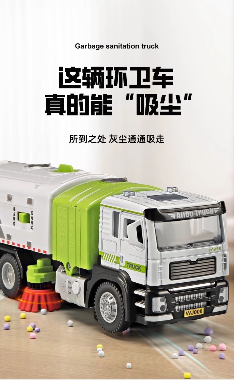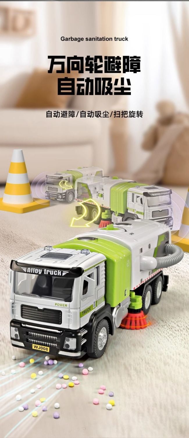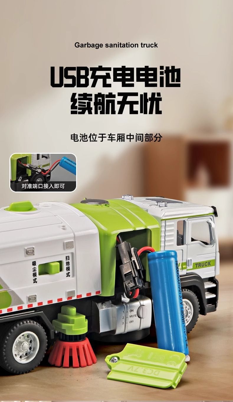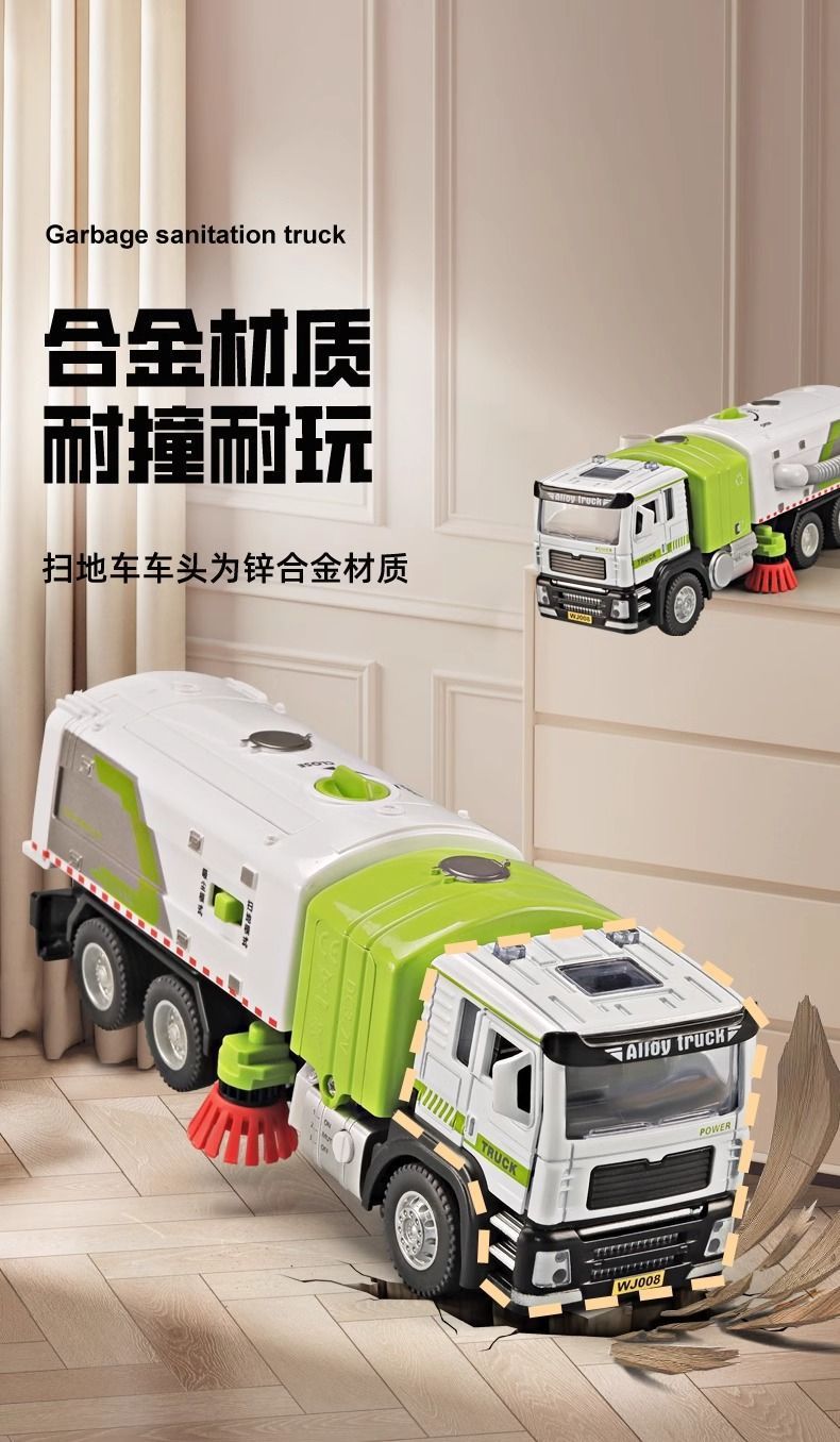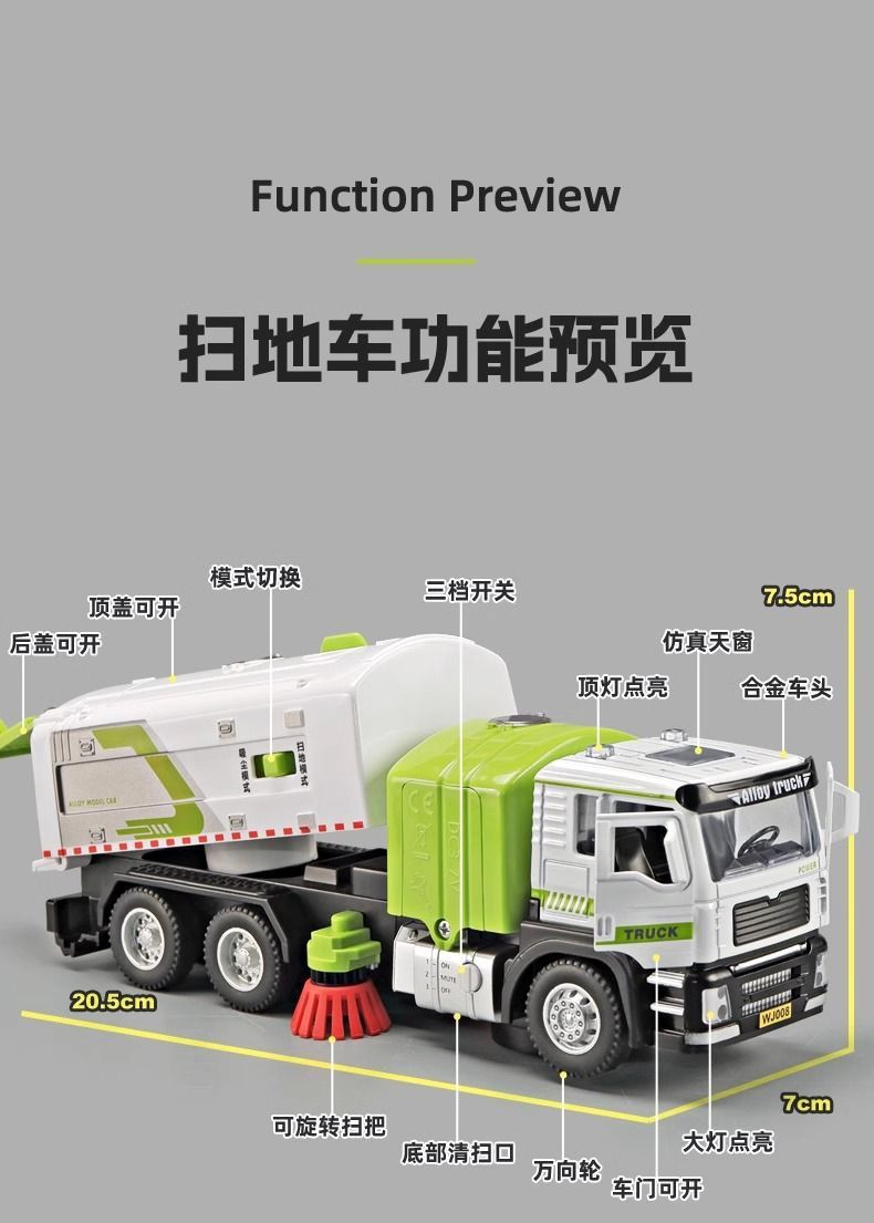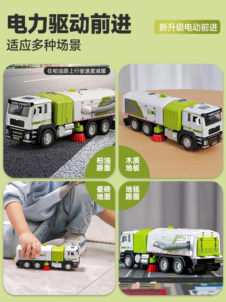 전기 쓰레기 트럭 어린이 장난감 대형 합금 스위퍼 장난감 자동차 도로 스위퍼 소년 위생 차스토어 가기
