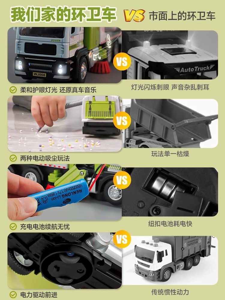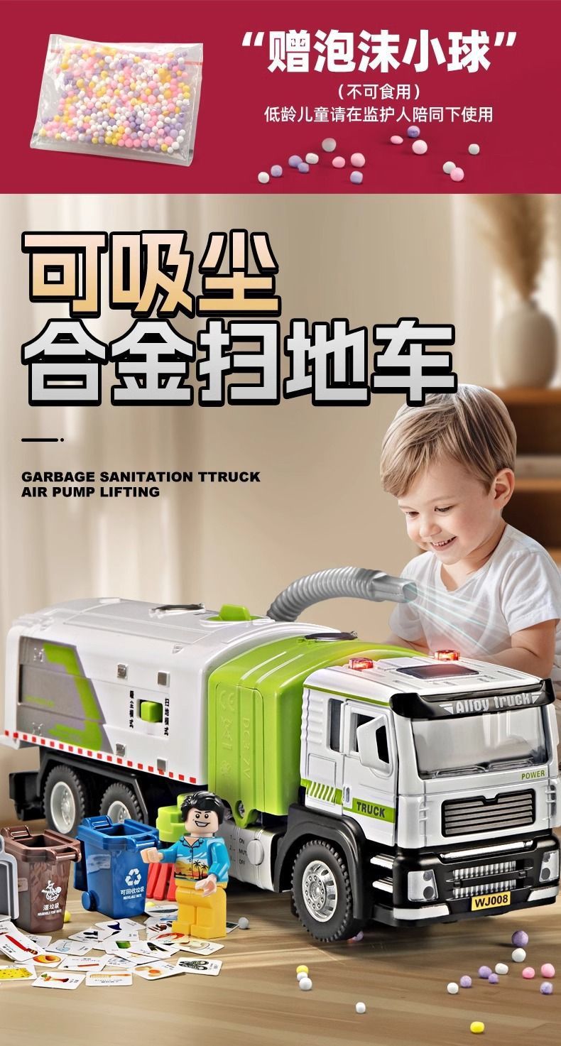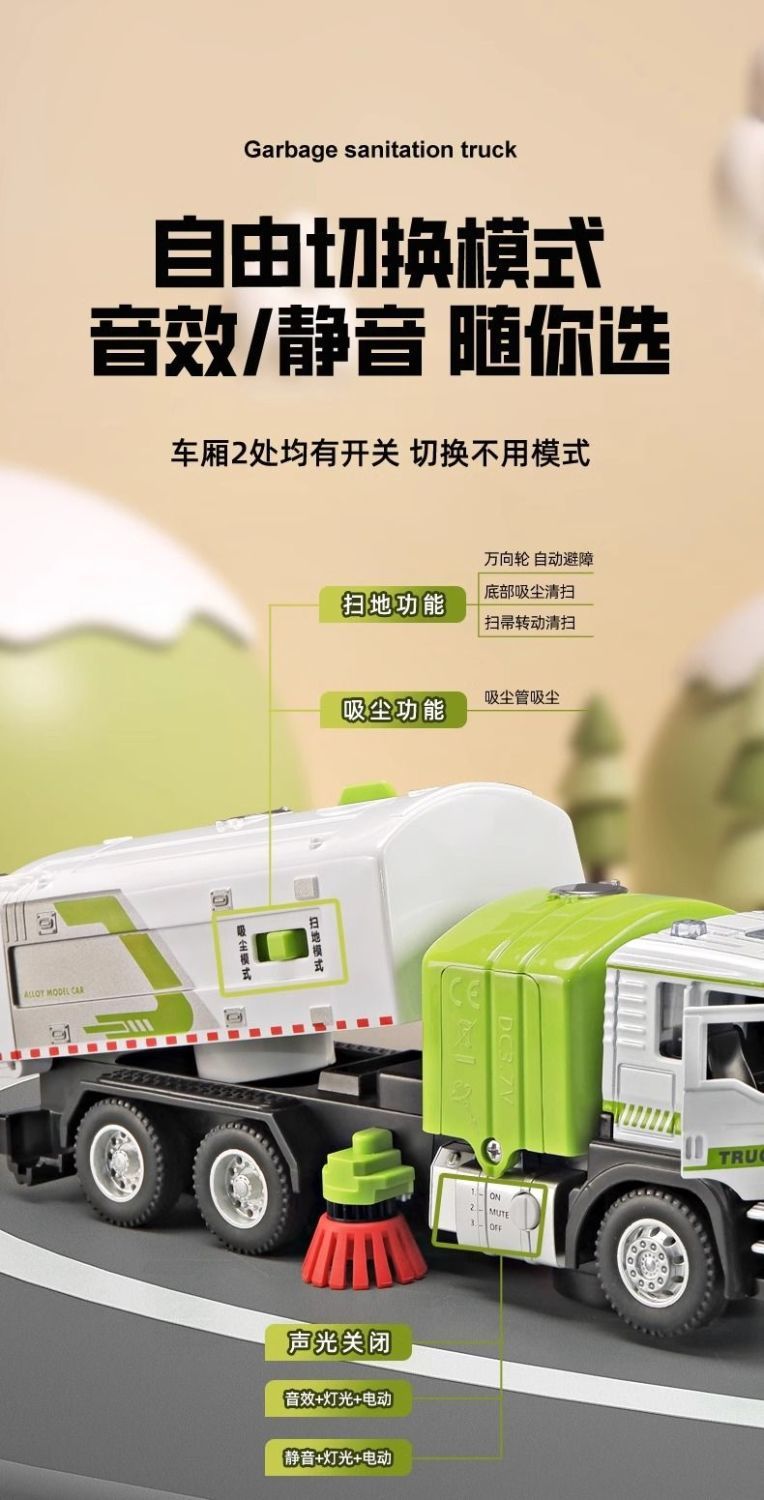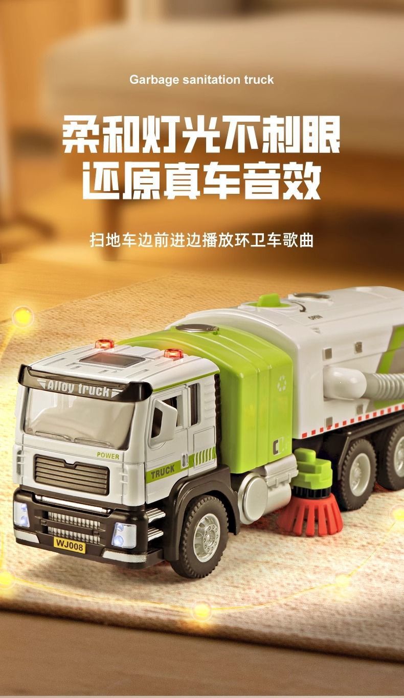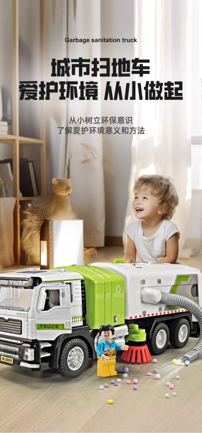 전기 쓰레기 트럭 어린이 장난감 대형 합금 스위퍼 장난감 자동차 도로 스위퍼 소년 위생 차스토어 가기