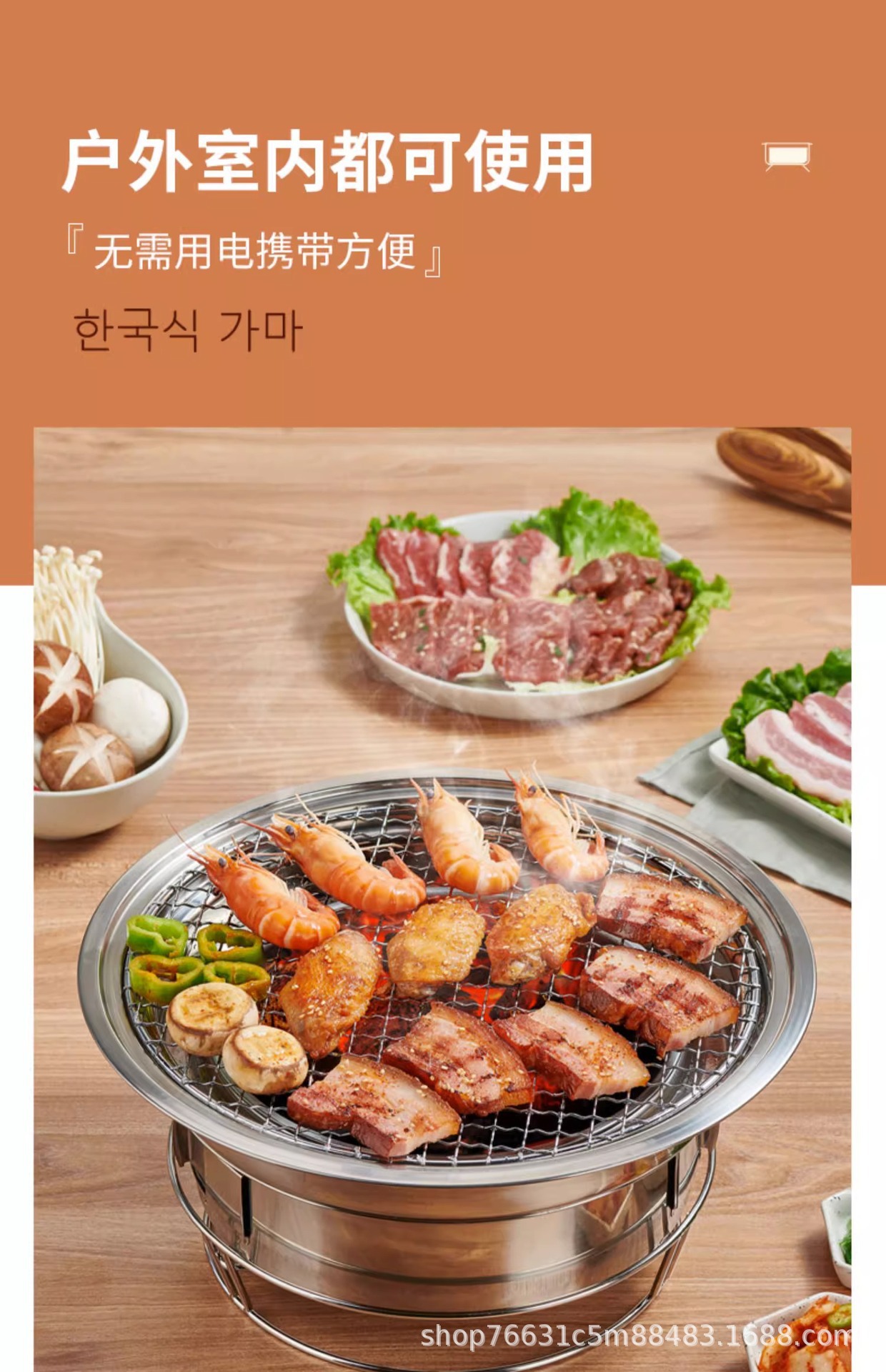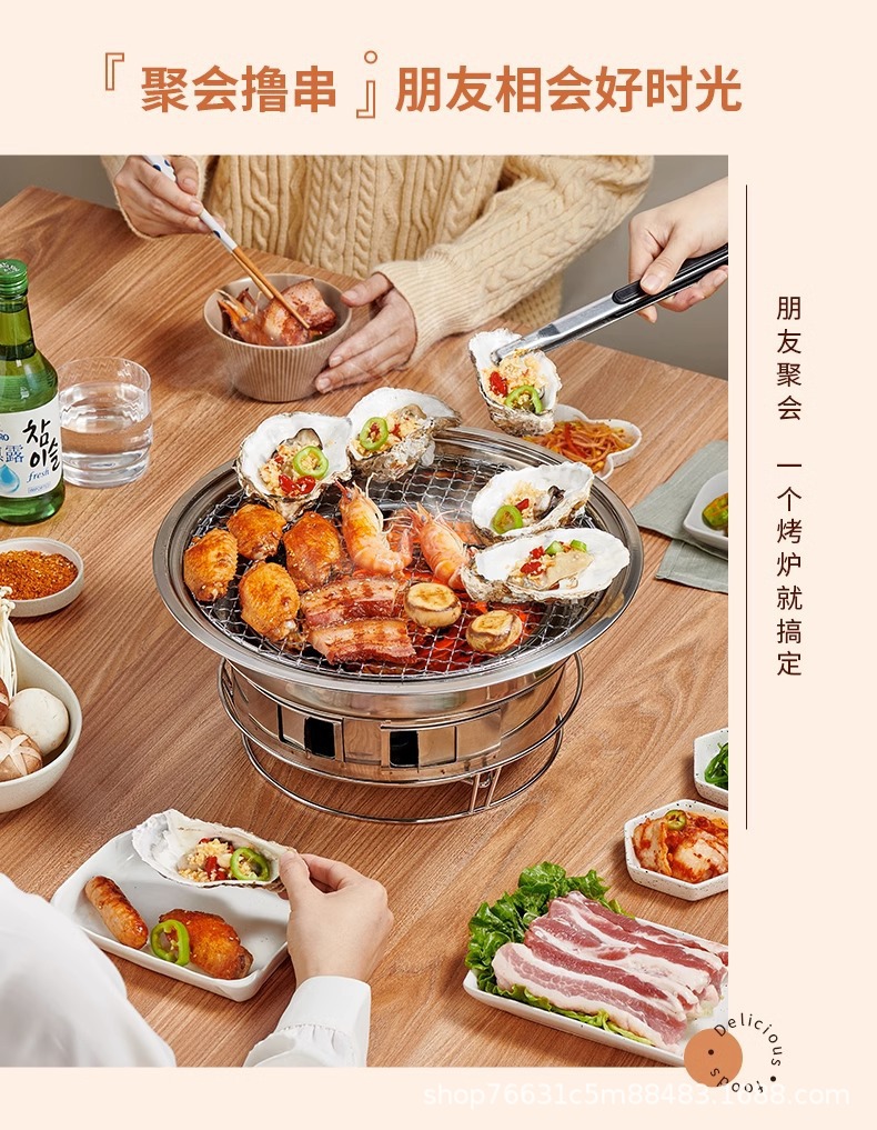 스테인레스 스틸 한국식 바베큐 그릴 상업용 야외 숯불 그릴 가정용 무연 숯불 바베큐 그릴 휴대용 주변 그릴 차 만들기스토어 가기