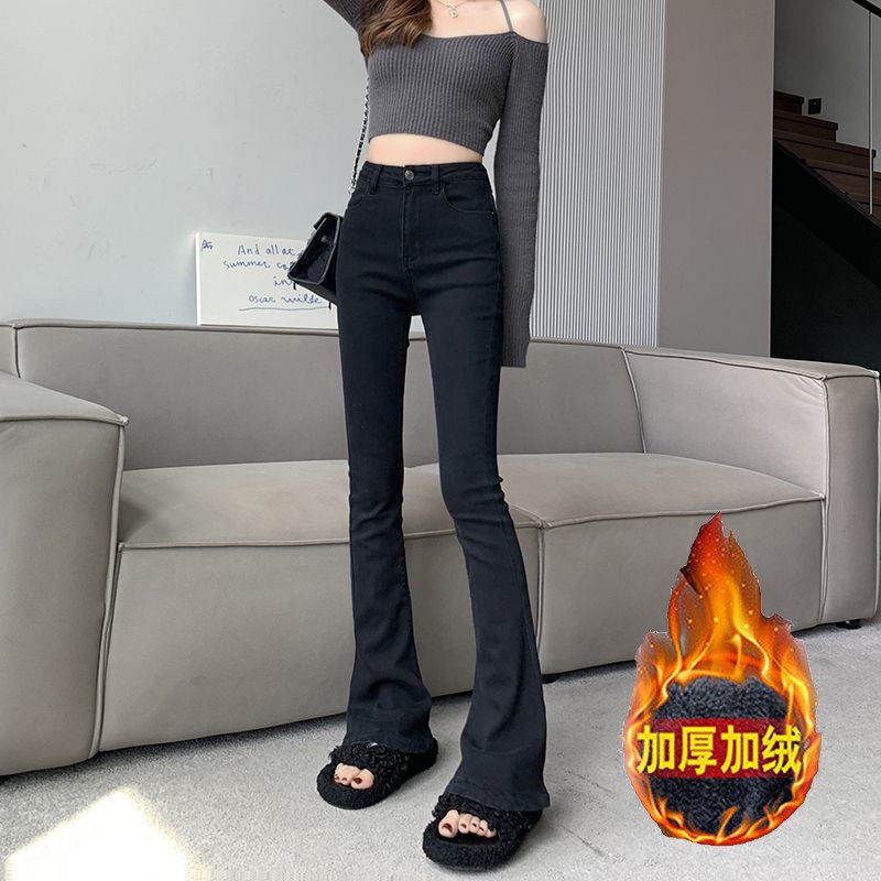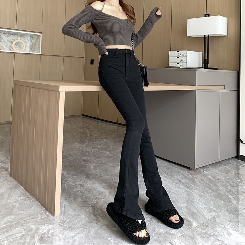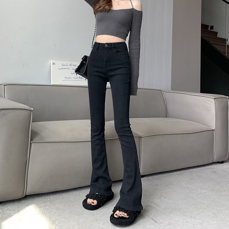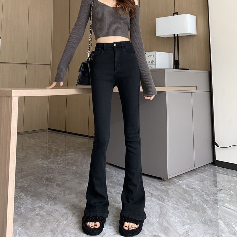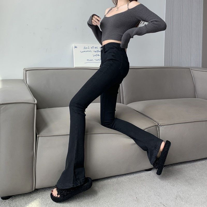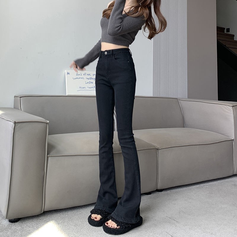 여성을위한 블랙 마이크로 플레어 청바지 2025 봄 새로운 하이 웨이스트 스트레치 슬리밍 핫 소녀 플레어 말굽 바지스토어 가기