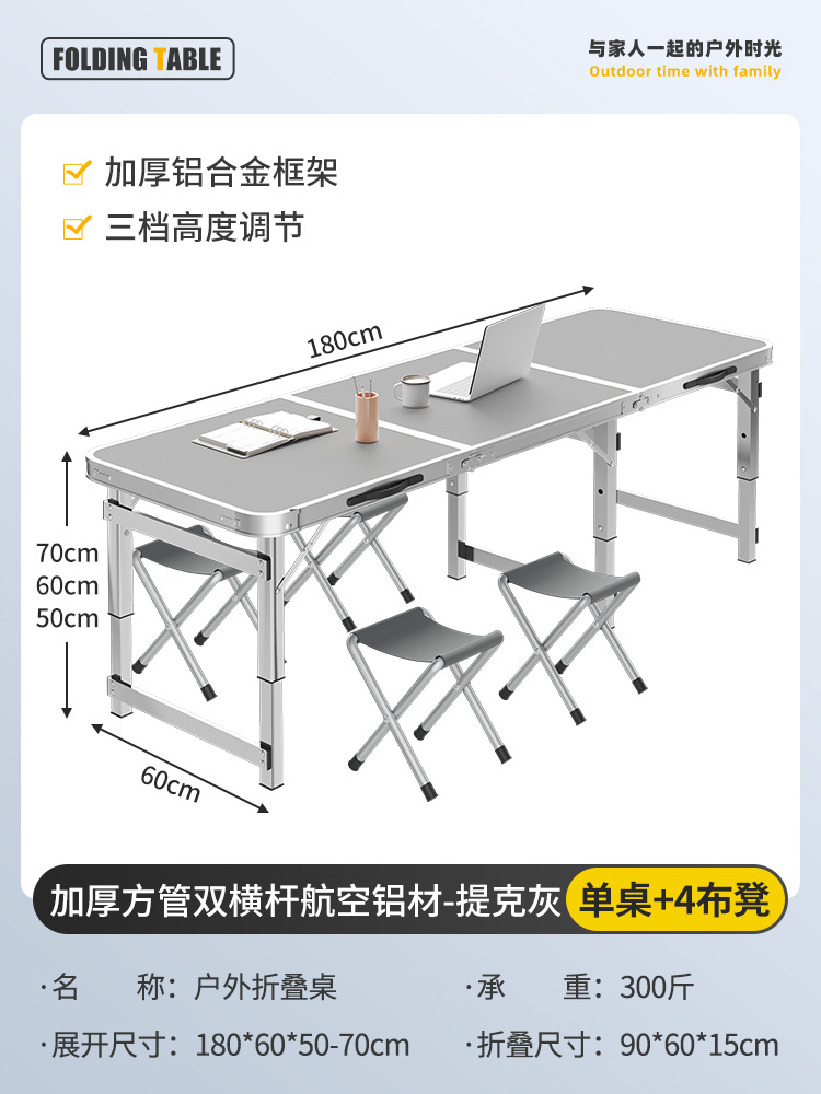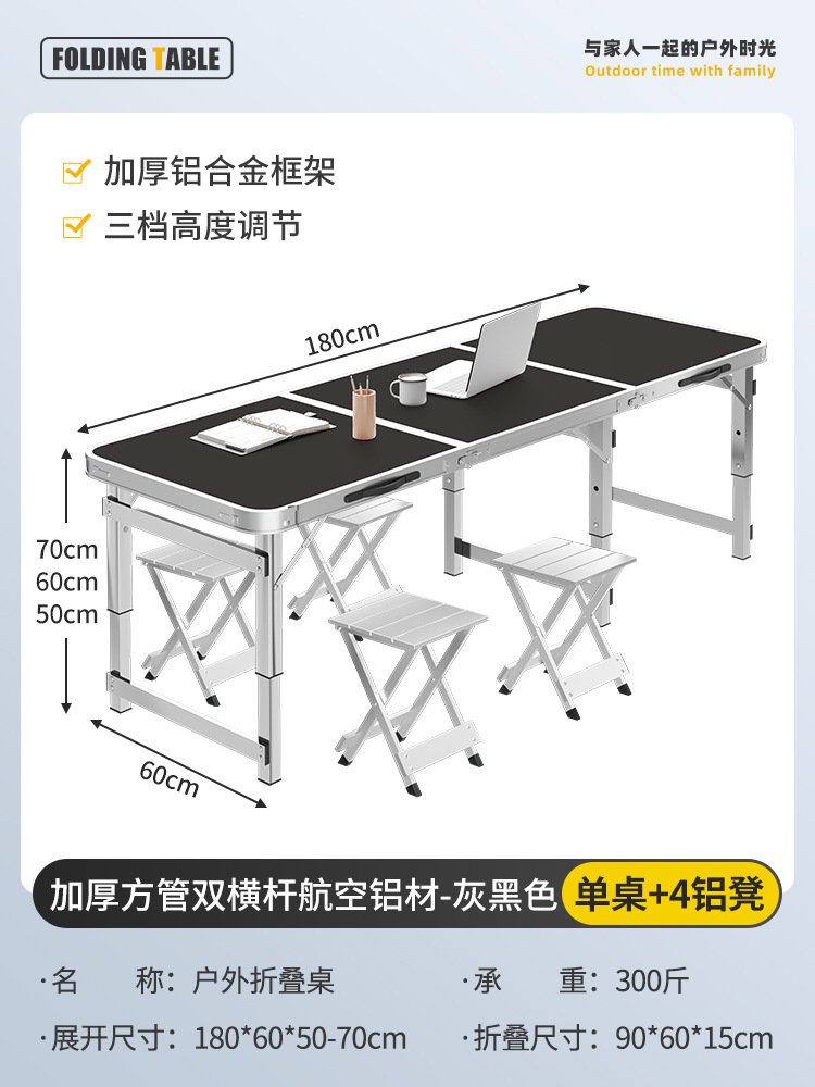 • [두꺼운 사각 튜브 이중 크로스바 항공 알루미늄] 180cm 그레이 블랙 + 알루미늄 스툴 4개 설치 불필요