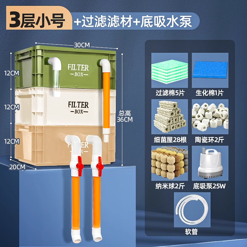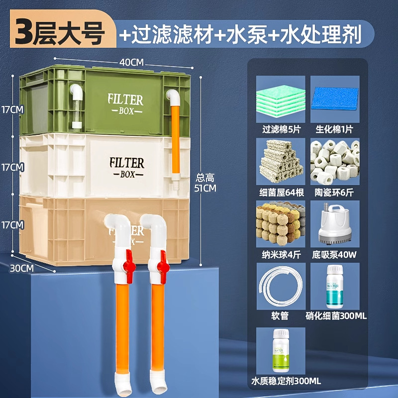 • 대형 2층 + 필터재 + 필터면 + 워터펌프 + 수처리제 [120CM 이내 실린더에 적용 가능]