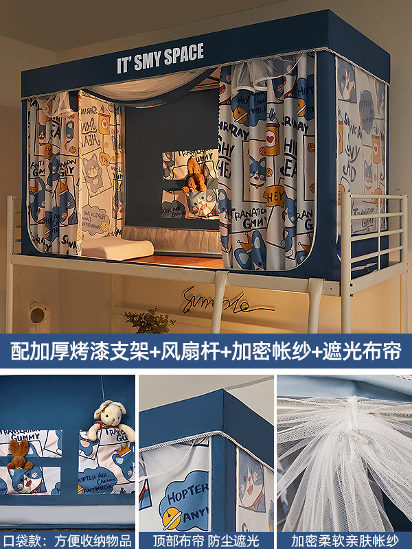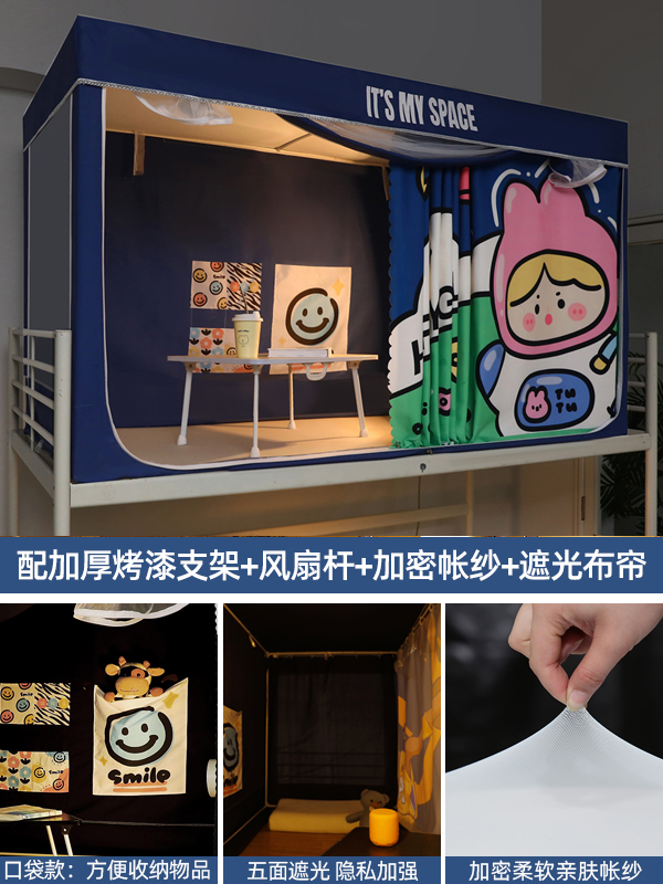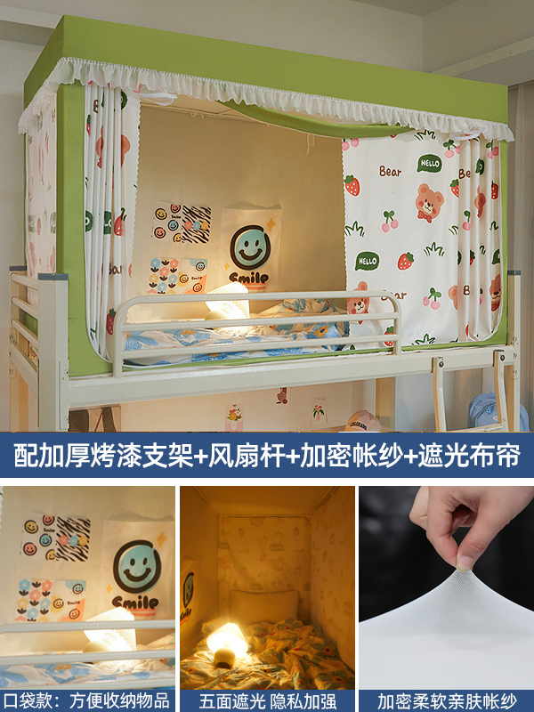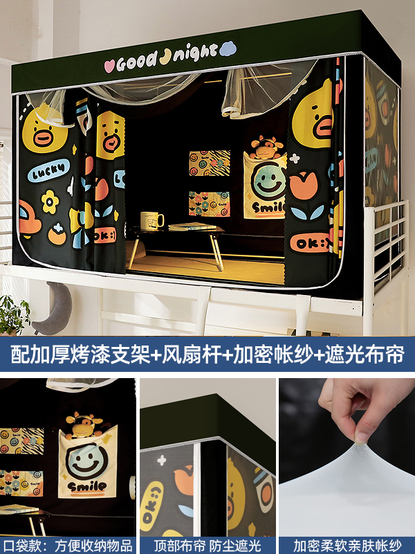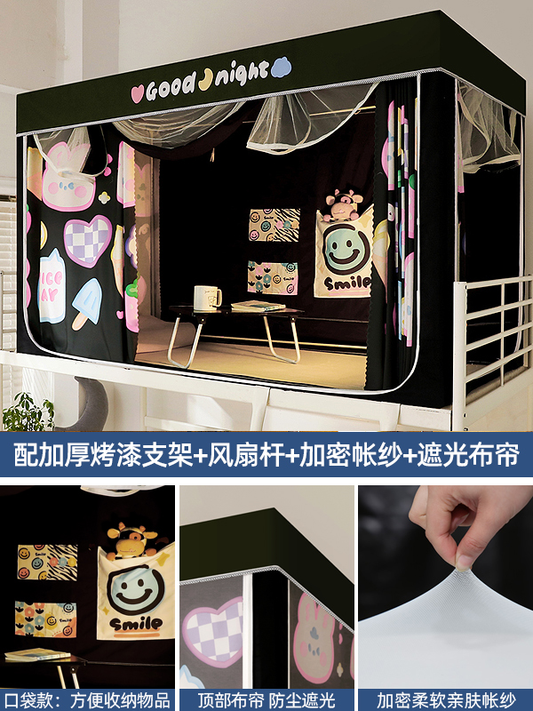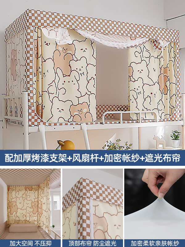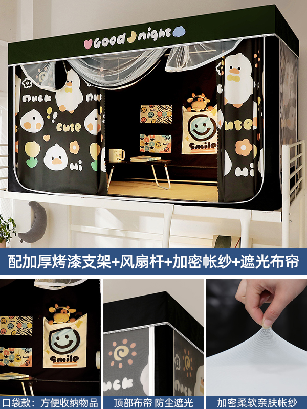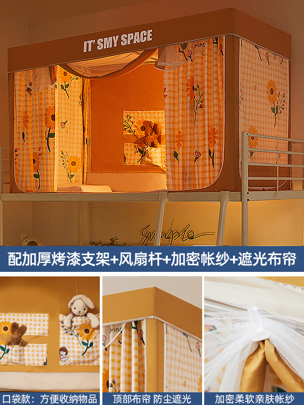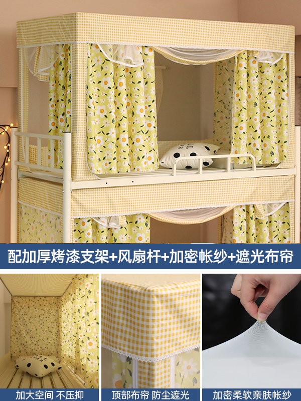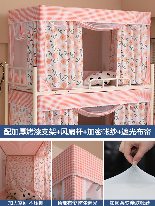 기숙사 학생 꽃무늬 침대 커튼 모기장 차광 일체형 지퍼 완전 밀폐형 이층 침대 여성 기숙사(스탠드 포함)스토어 가기