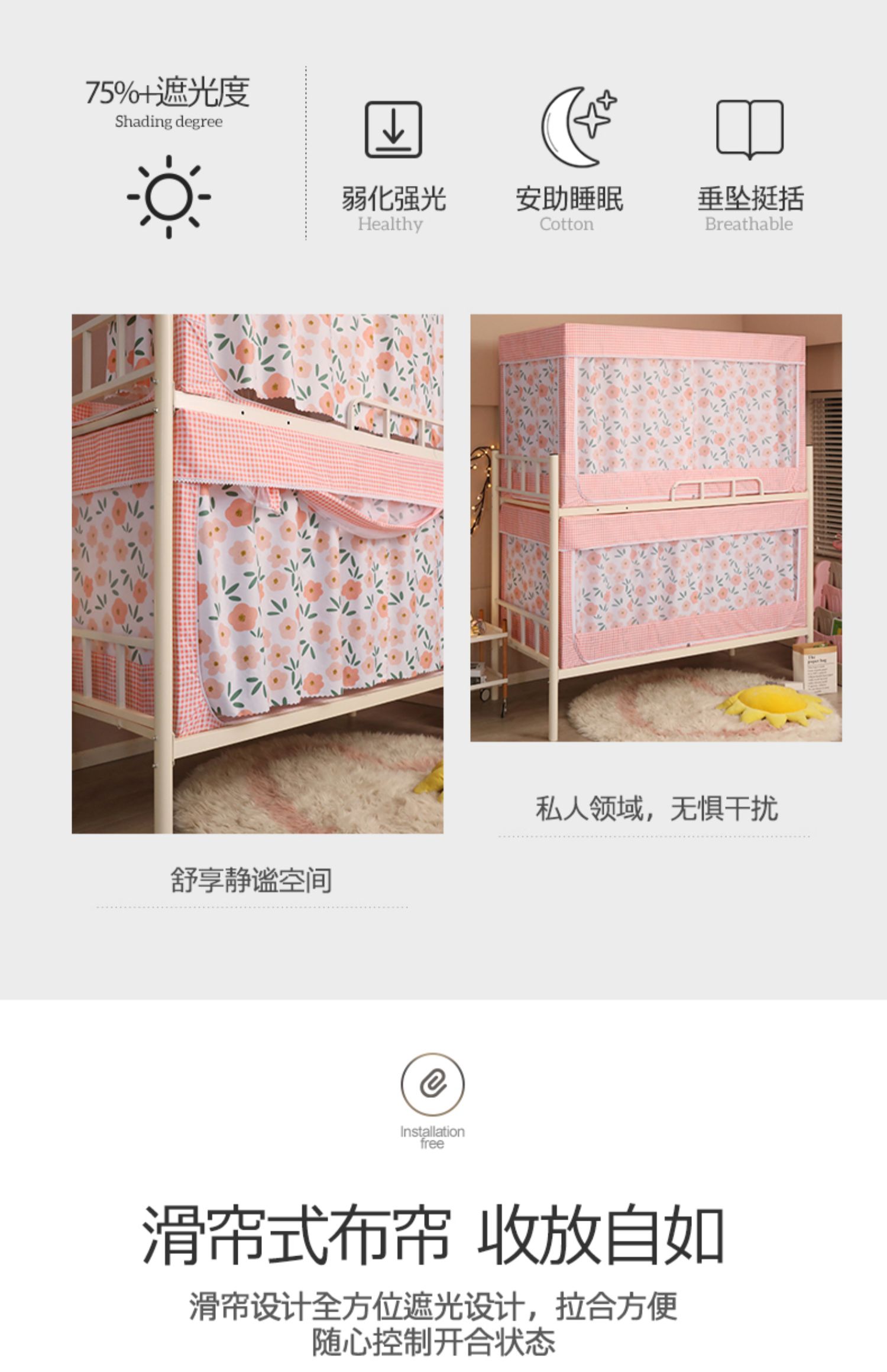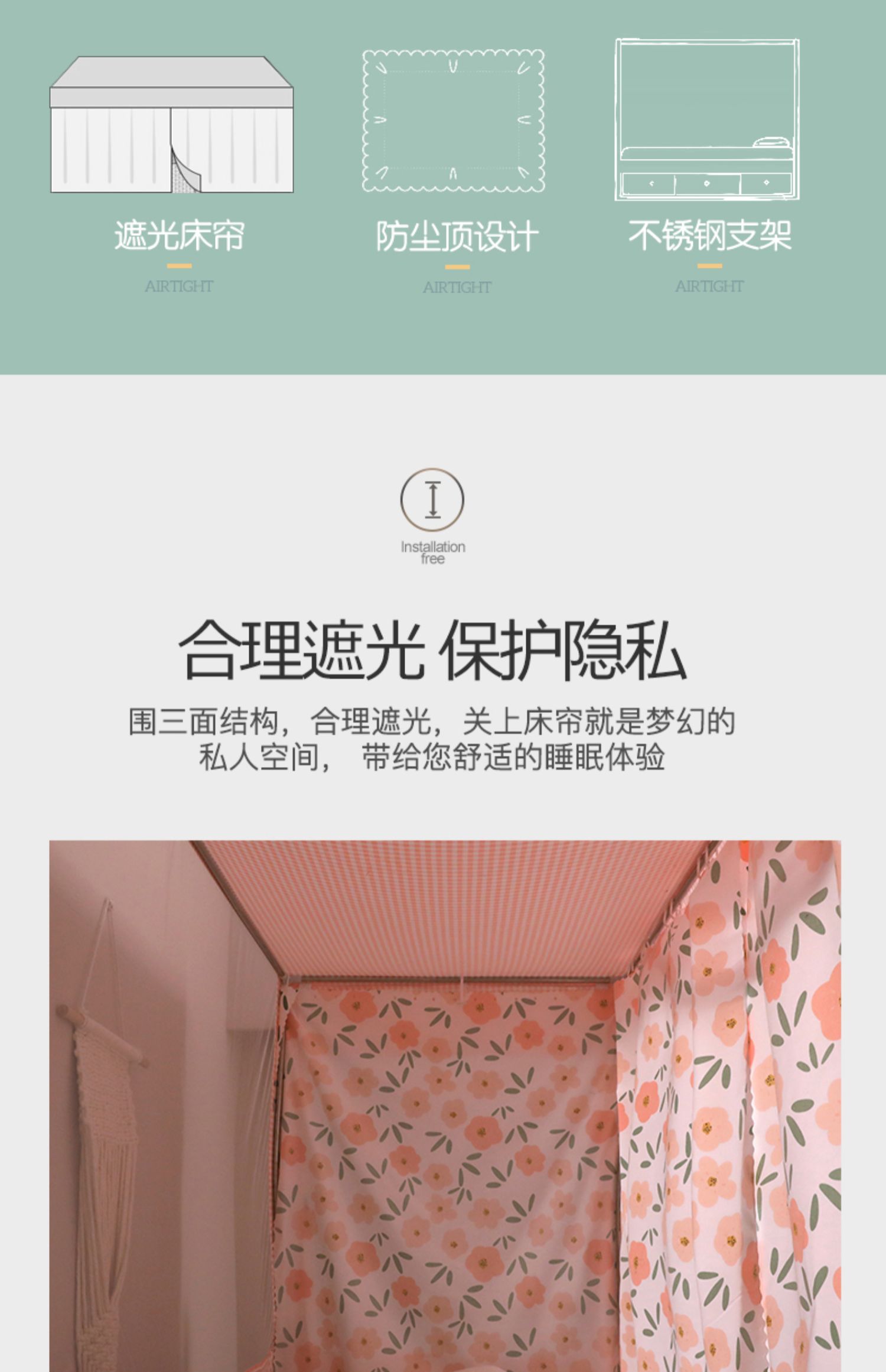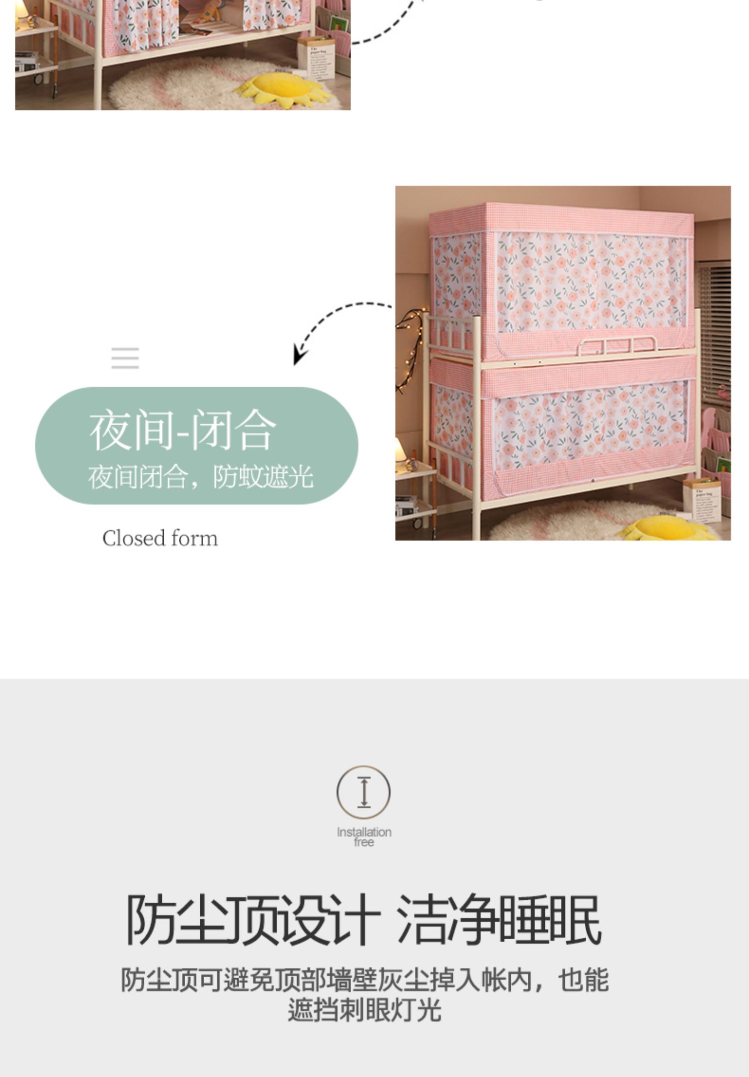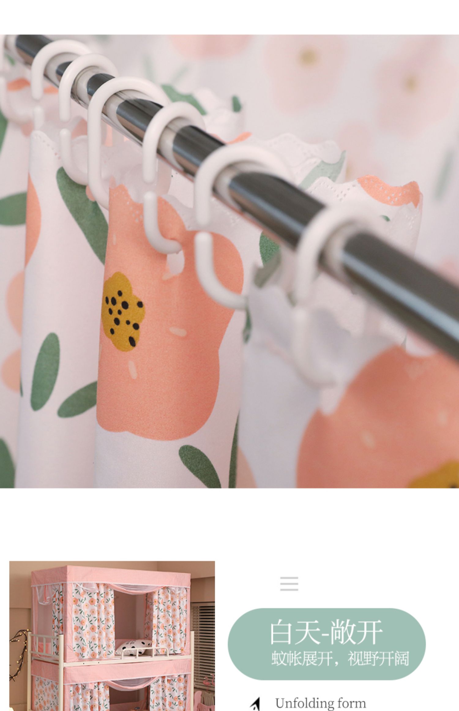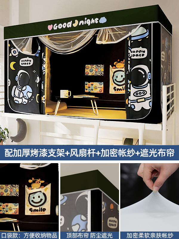 기숙사 학생 꽃무늬 침대 커튼 모기장 차광 일체형 지퍼 완전 밀폐형 이층 침대 여성 기숙사(스탠드 포함)스토어 가기