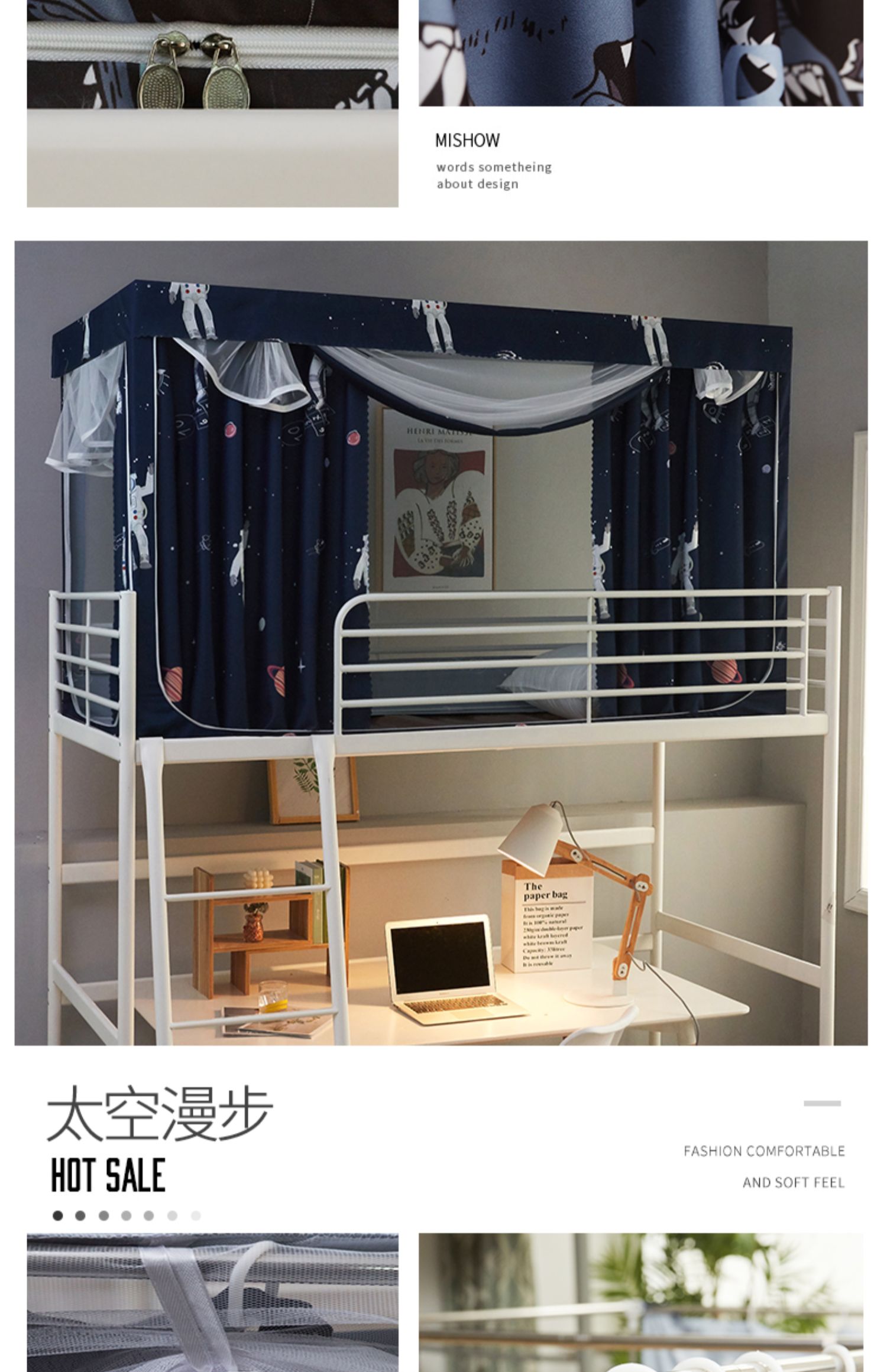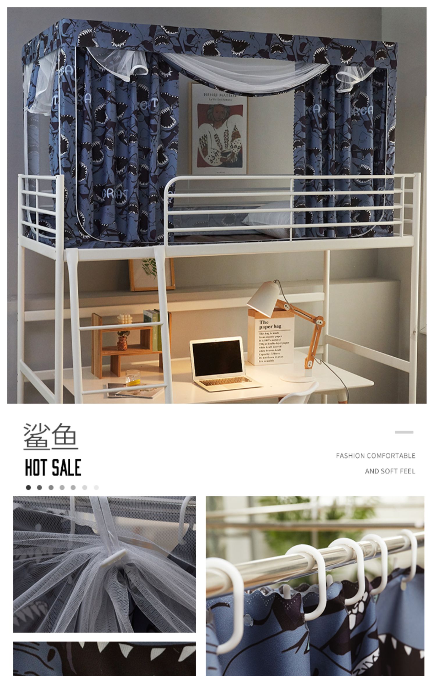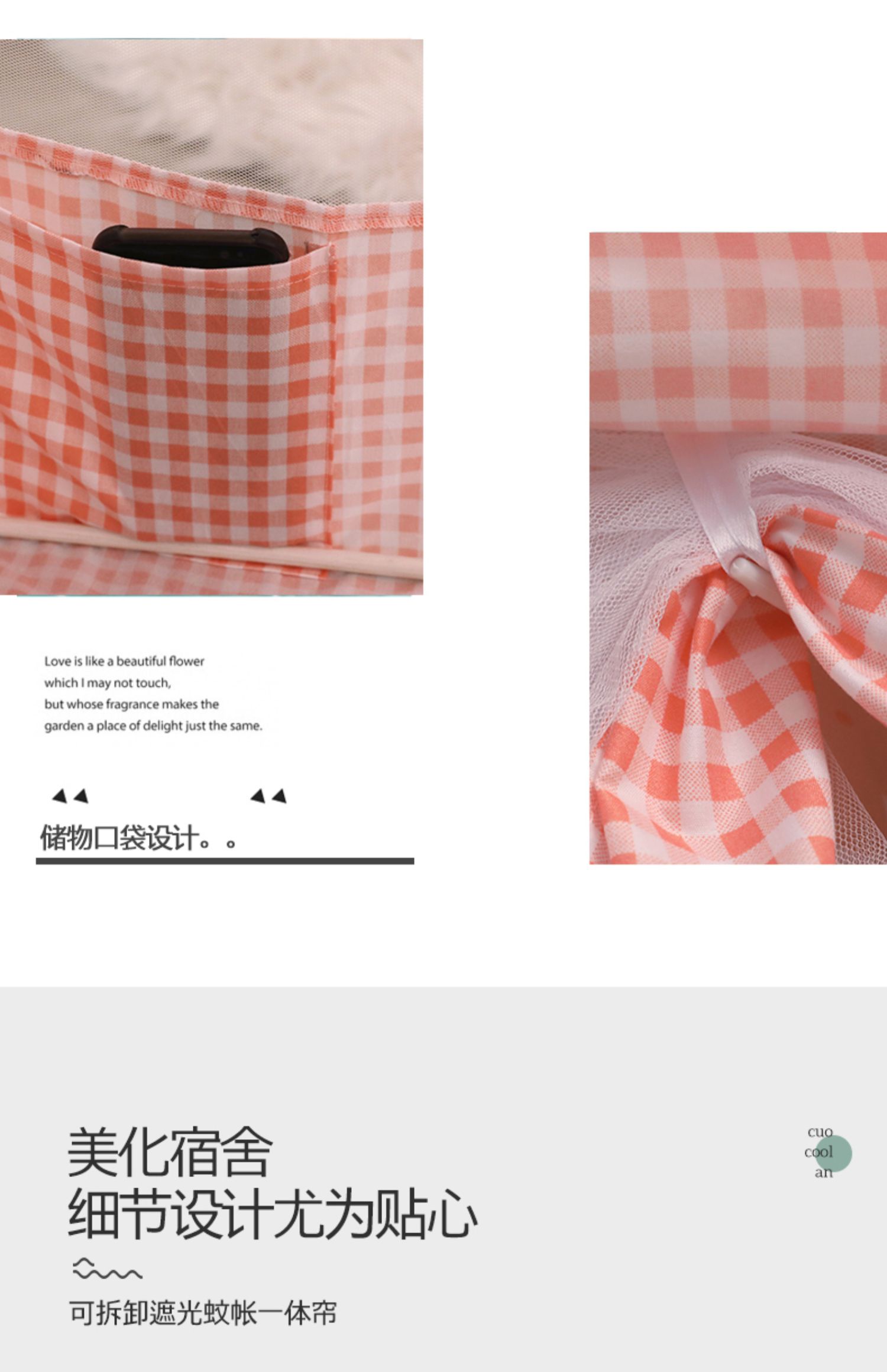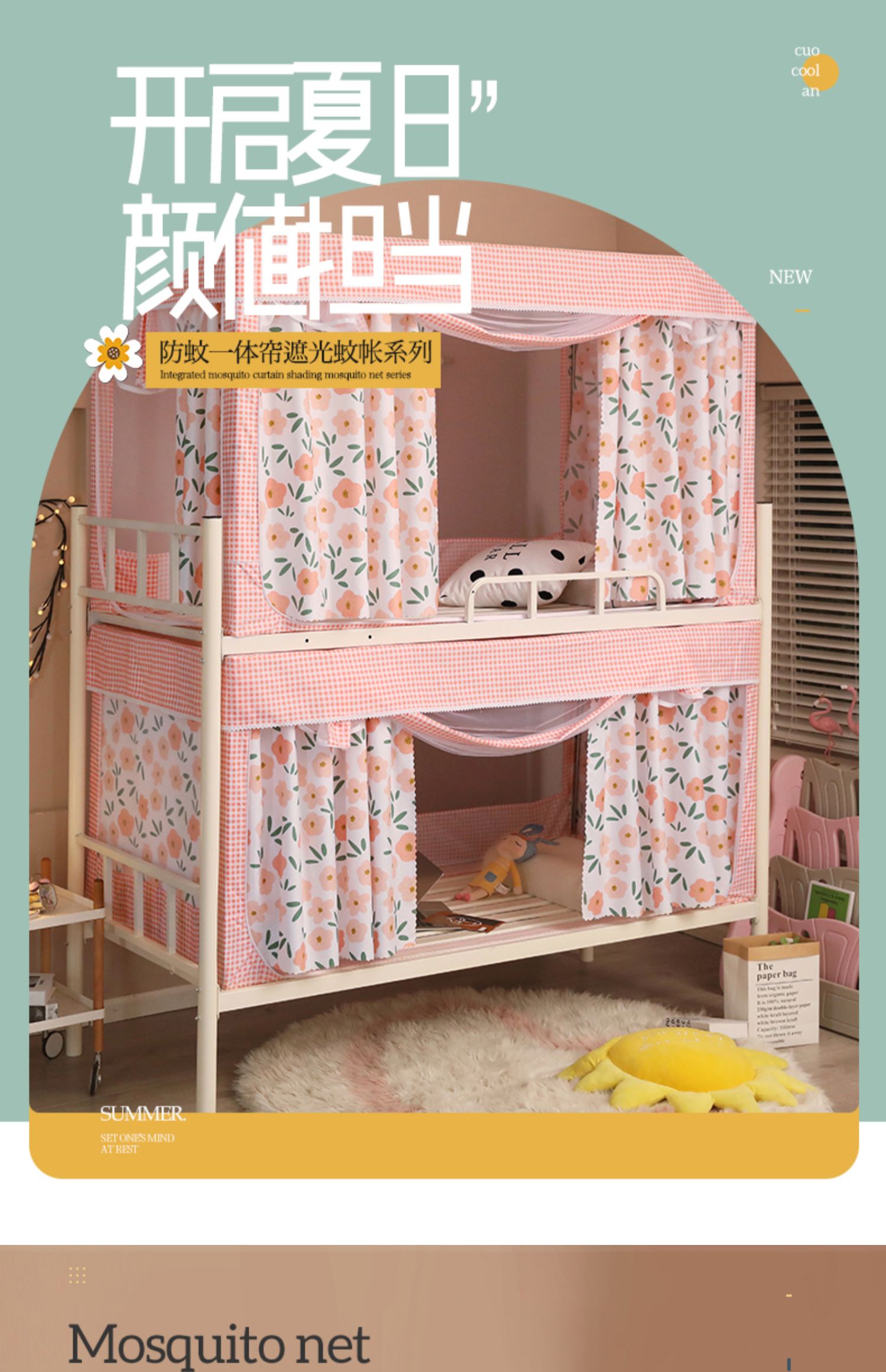 기숙사 학생 꽃무늬 침대 커튼 모기장 차광 일체형 지퍼 완전 밀폐형 이층 침대 여성 기숙사(스탠드 포함)스토어 가기