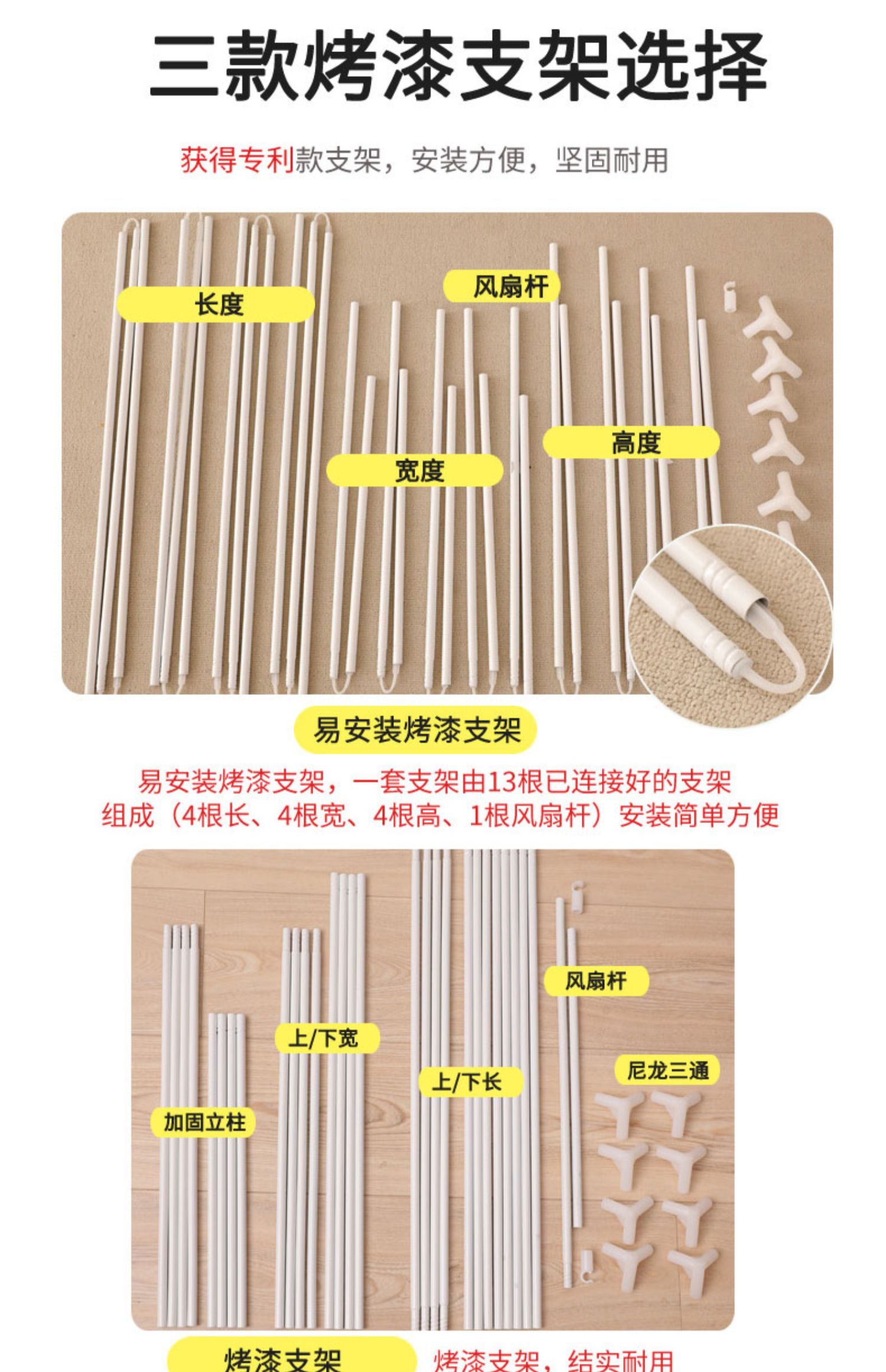 • 보관 가방 모델 Bidetu(5면 쉐이딩 + 브래킷 + 상단 + 모기장)에는 팬 로드가 함께 제공됩니다.