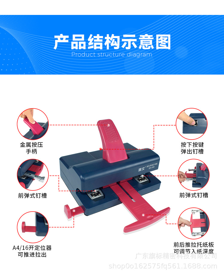 Qiweng 양방향 스테이플러 행정 문서 표준 형식 노동 절약 바인딩 기계 표준 이중 행 사무실 스테이플러