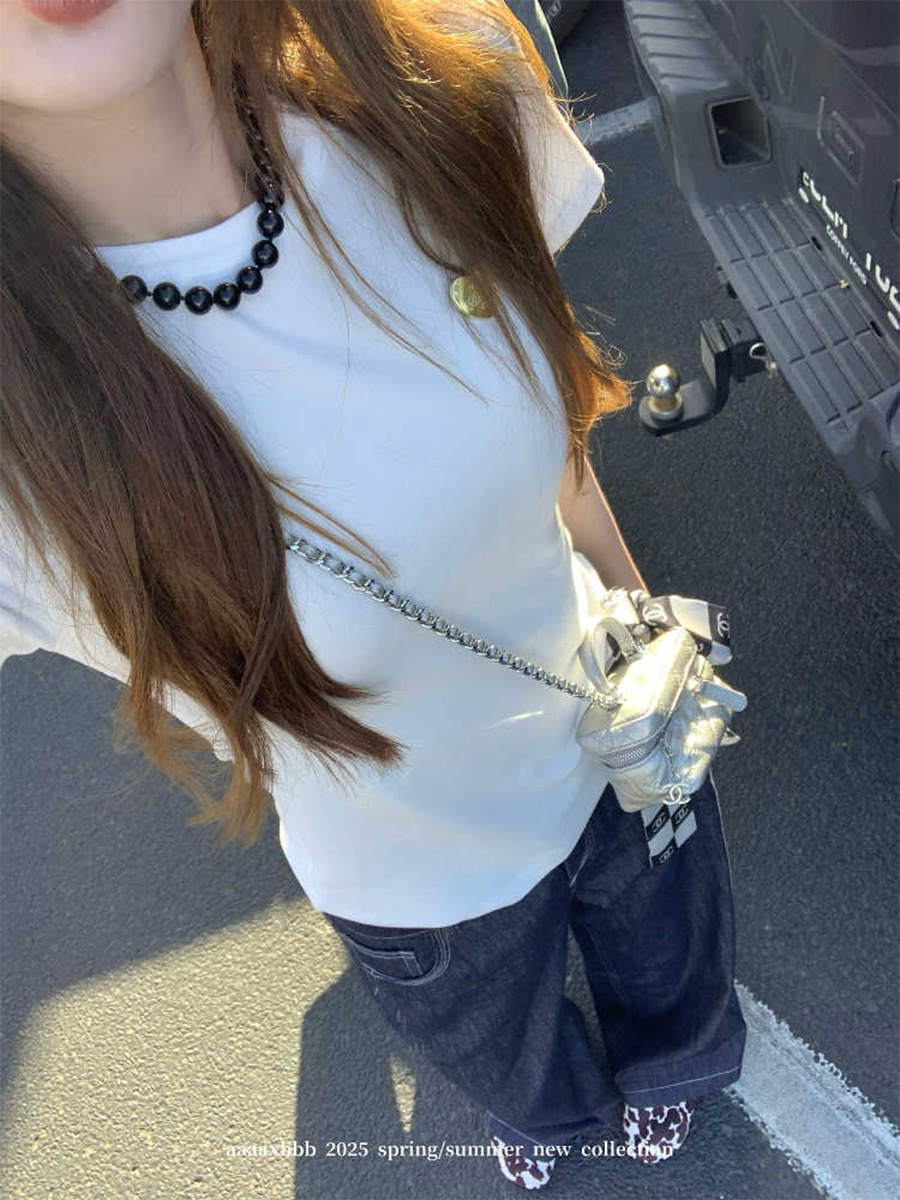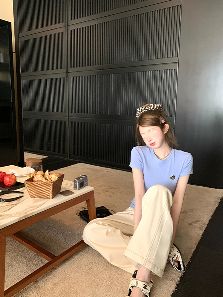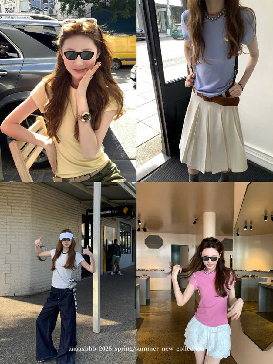 Aaaaxbbb 작고 아름다운 4 색베이스 작은 반팔 여성용 티셔츠 러브 브로치 라운드 넥 올 매치 우아한 탑스토어 가기