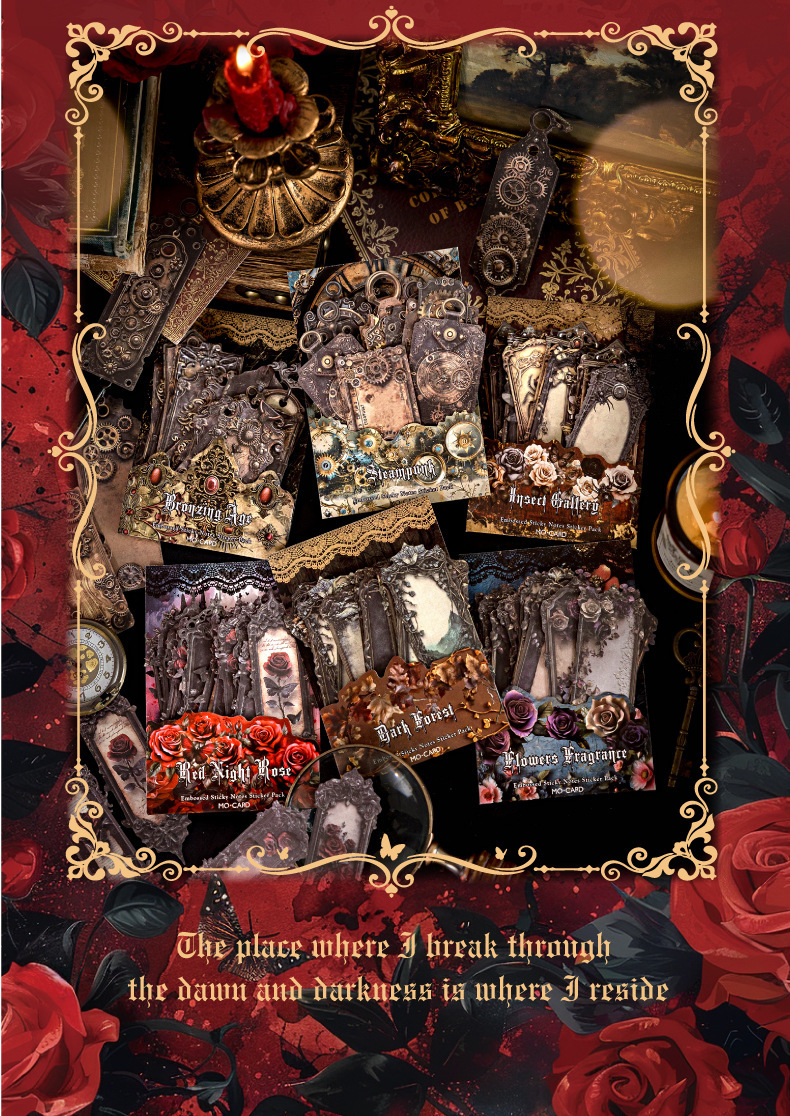 모 잉크 릴리프 노트 스티커 종이 가방 어두운 전설 시리즈 고딕 스타일 소재 손 계정 밸리 뷰티 DIY 콜라주스토어 가기