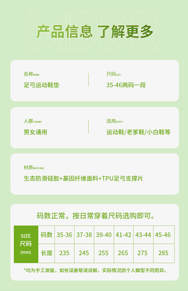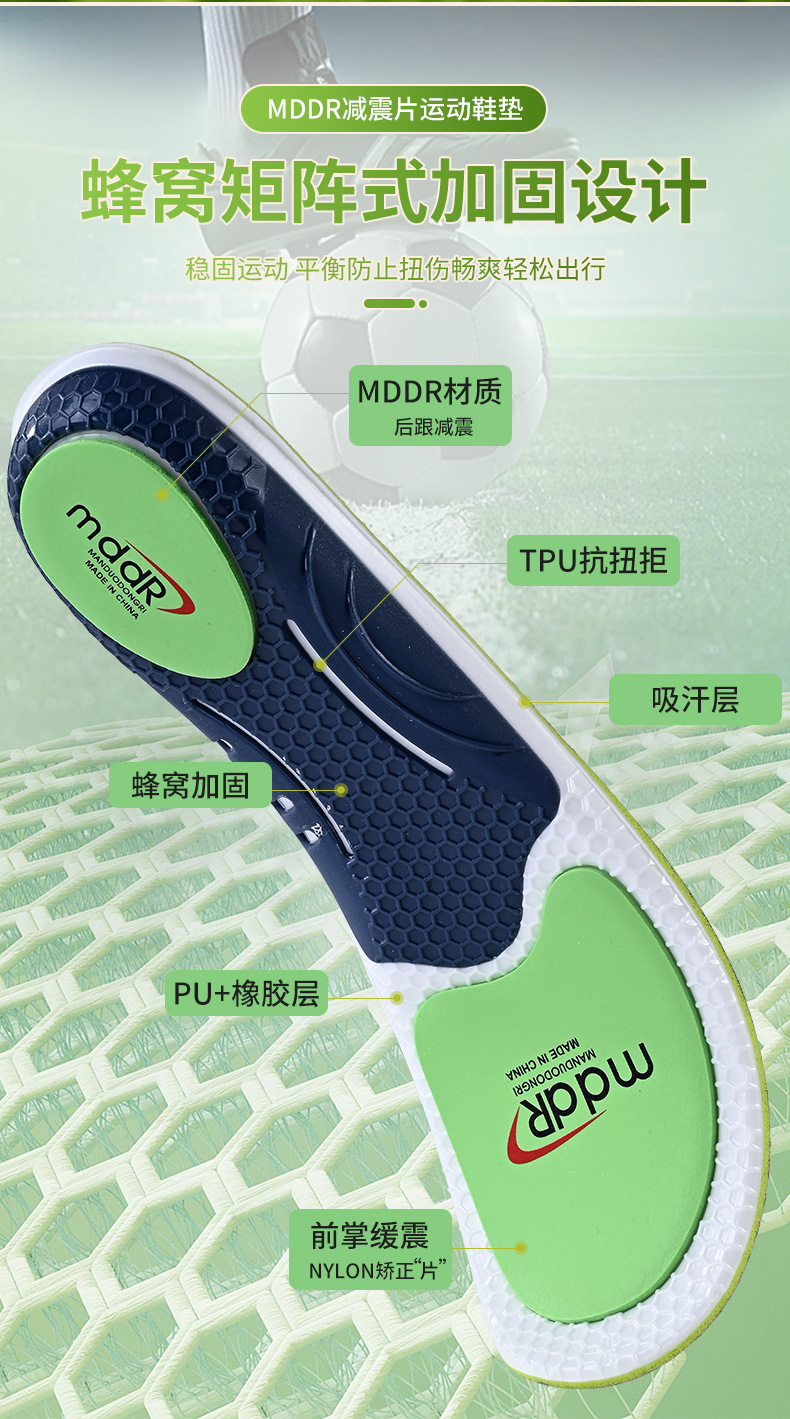재고 MDDR 충격 흡수 스포츠 깔창 정형 외과 아치 지원 통기성 높은 탄성 쿠션 농구 신발 쿠션 사용자 정의스토어 가기