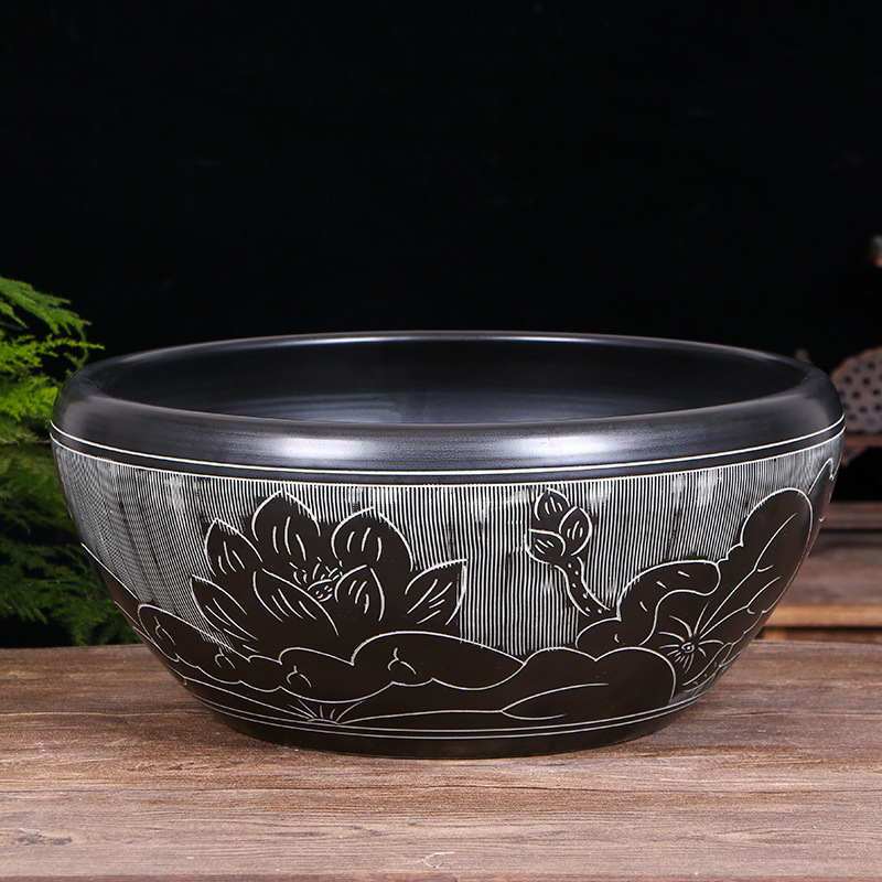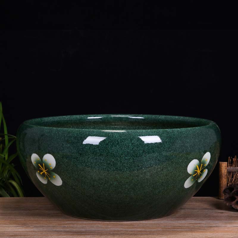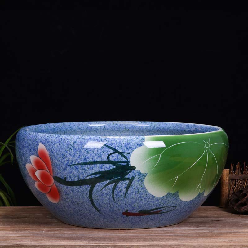 Jingdezhen 세라믹 어항 손으로 그린 데스크탑 스몰 사이즈 다시보기 Medaka Gold Fish Tank Lotus Turtle Tank Bowl 백합 워터 로터스 분지스토어 가기