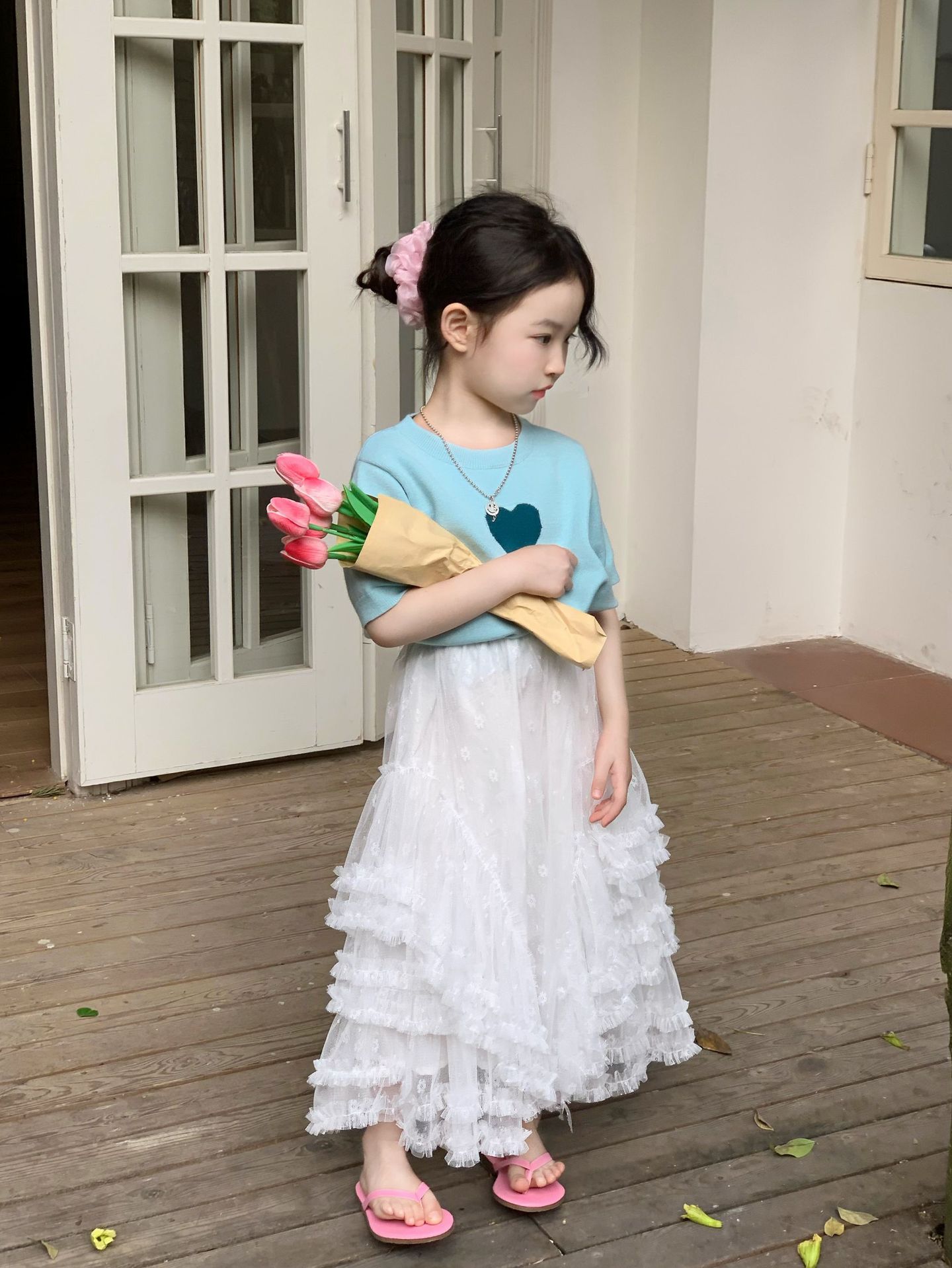 여자 치마 2025 여름 새 어린이 2 ~ 7 세 한국 스타일 스커트 어린이 스티칭 거즈 스커트 케이크 스커트