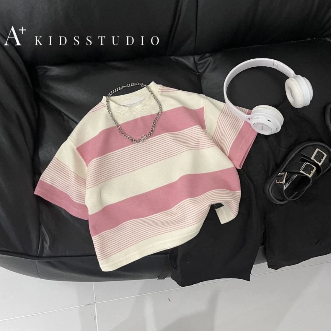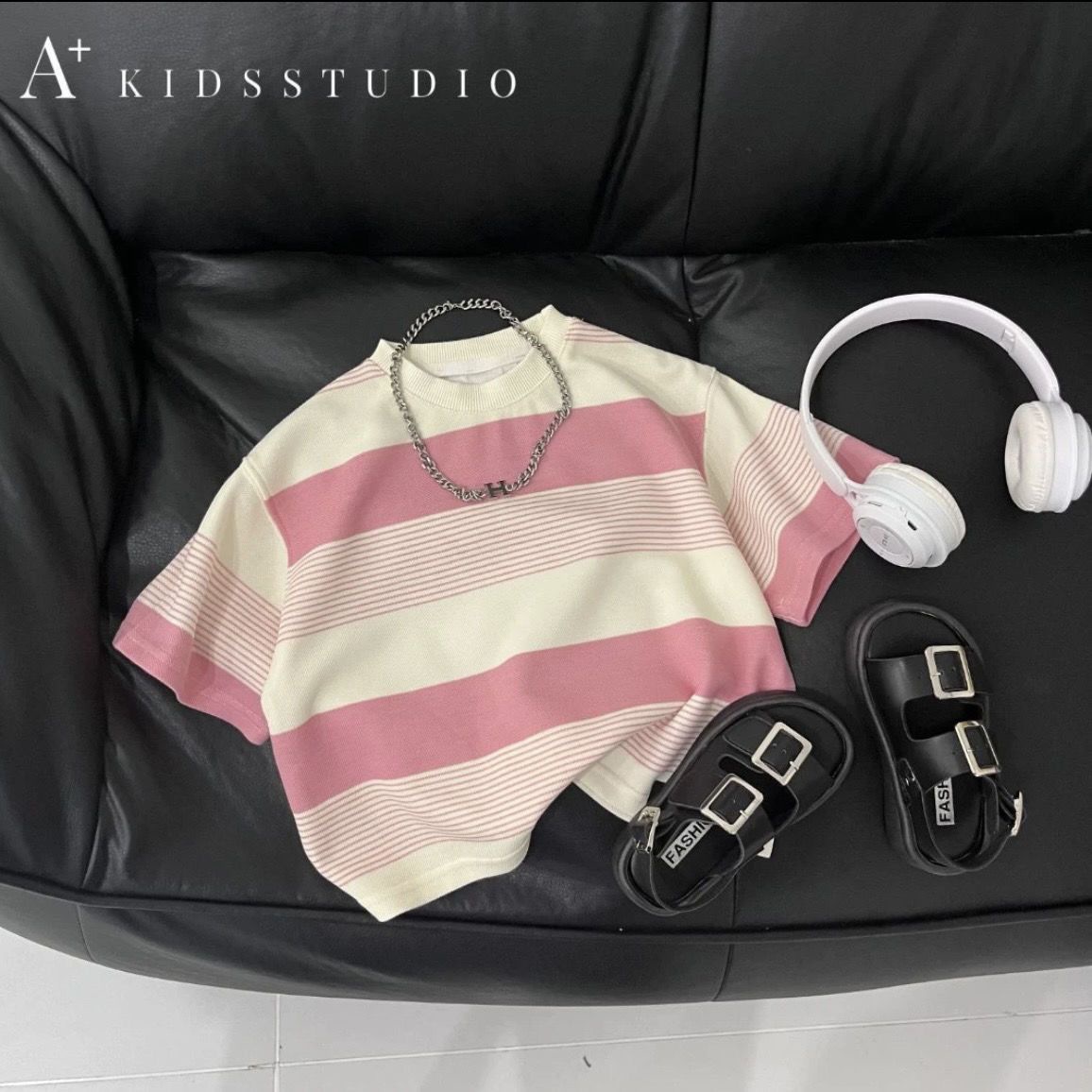 남아 및 여아용 여름 반팔 티셔츠, 유아용 패셔너블한 아동용 맞춤형 트렌디한 인터넷 연예인 컬러 블록 스트라이프 패셔너블 반팔 상의
