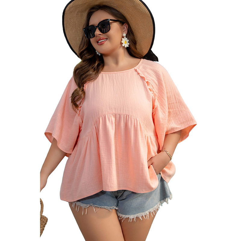 여성을위한 봄 여름 새로운 단색 대형 질감 쉬폰 셔츠 유럽과 미국의 심플한 스타일 느슨한 살을 덮는 여성을위한 5부 소매 탑
