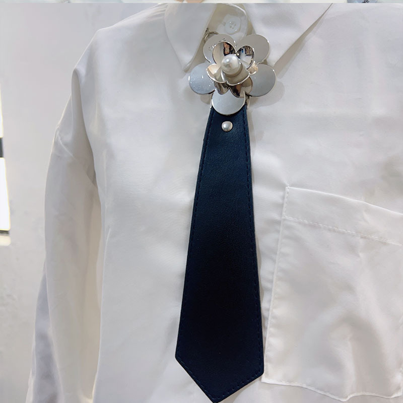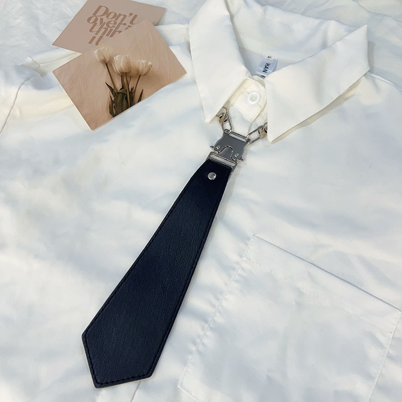 일본 넥타이 여성 셔츠 액세서리 대학 스타일 가죽 금속 의류 체인 버클 목 펑크 장식 배치