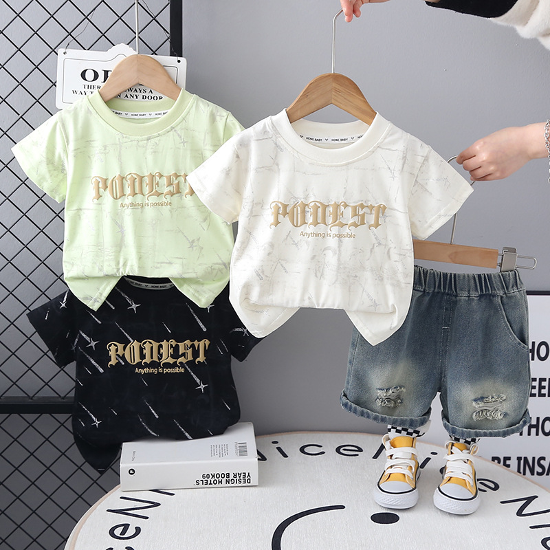 소년 여름 정장 2025 새로운 스타일 아기 여름 정장 반팔 어린이 인터넷 연예인 유행 스트리트 투피스 세트스토어 가기