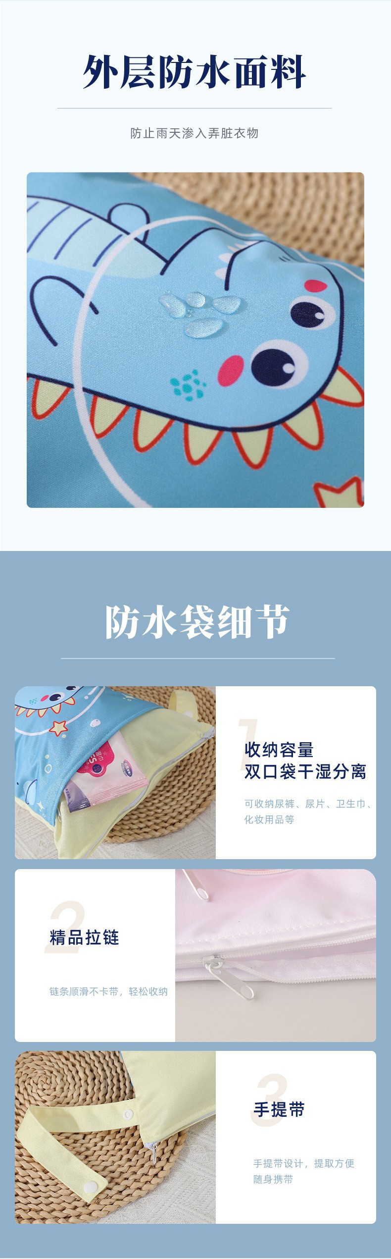 TEMU 국경 간 Amazon 인기 위치 디지털 인쇄 색상 매칭 더블 포켓 방수 보관 가방 제조 업체 도매스토어 가기