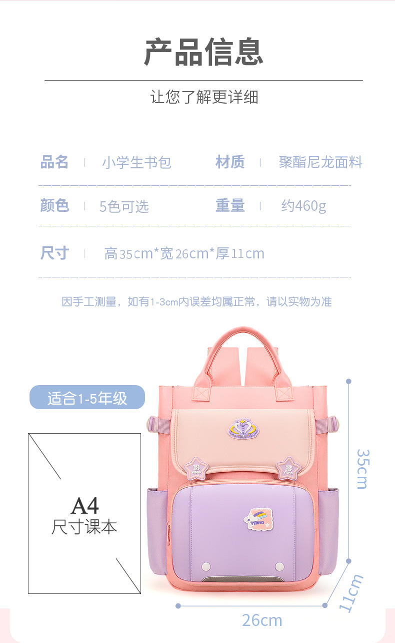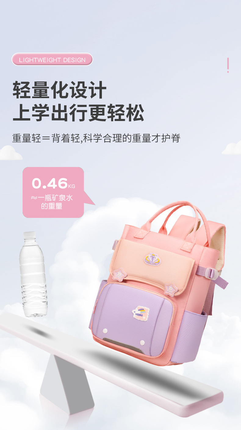초등학생 1, 2, 3~6학년 남학생을 위한 어린이 책가방, 여아용 초경량 경량 척추 보호 책가방