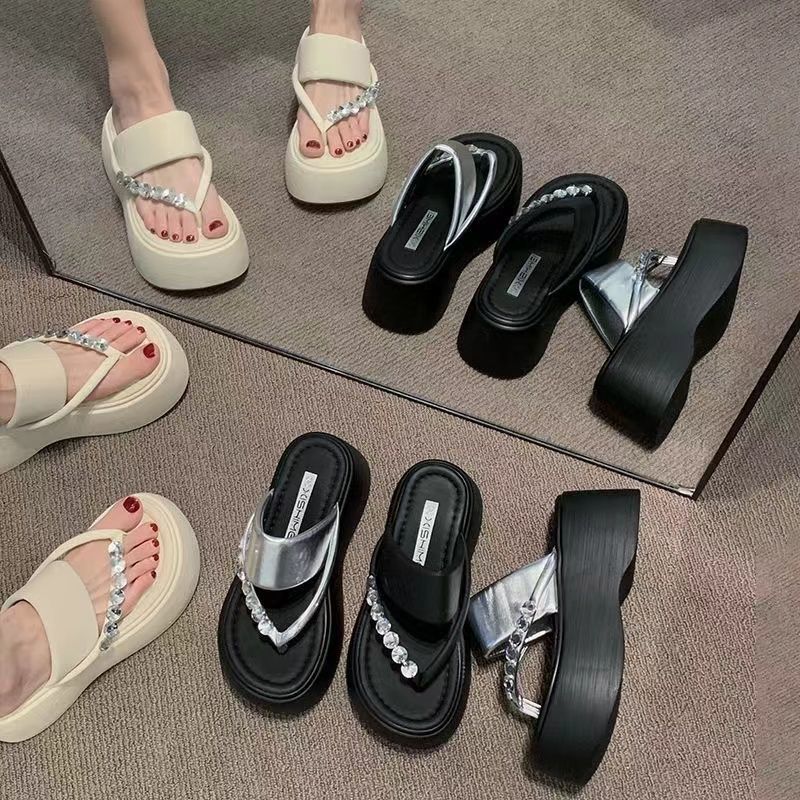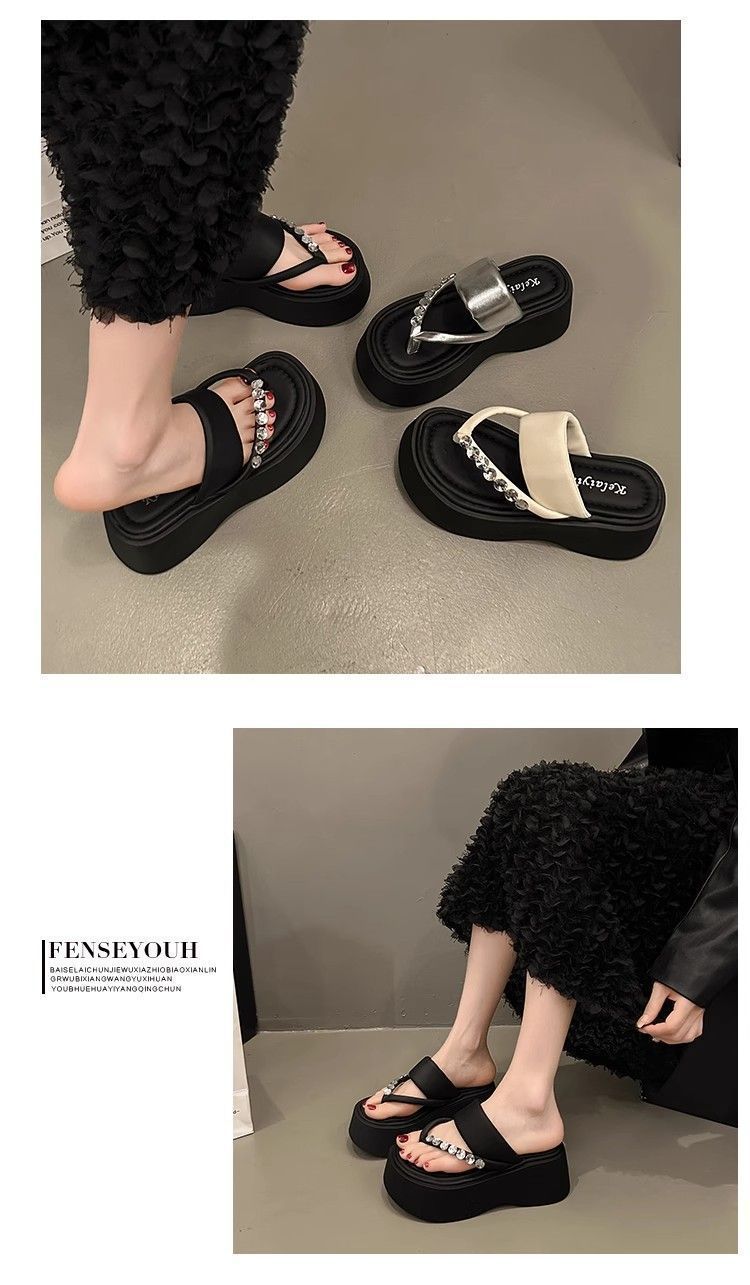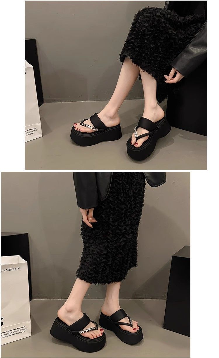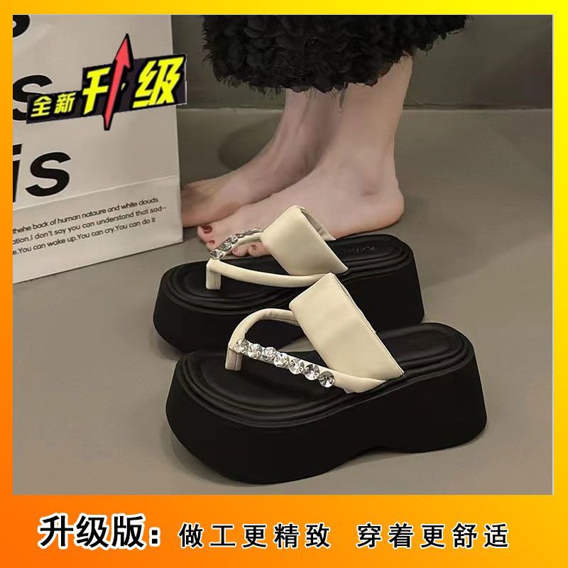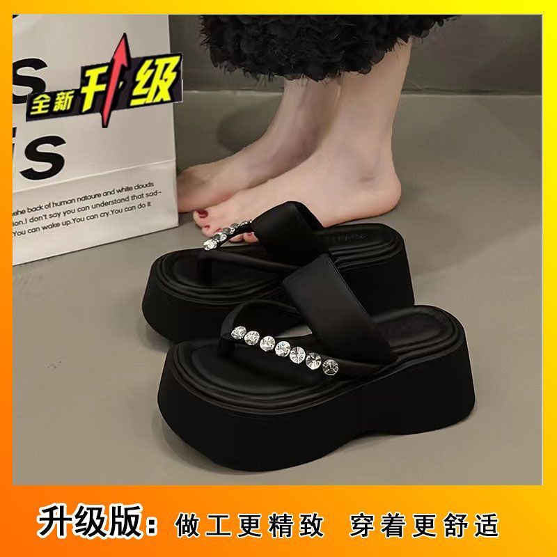 여름 아우터 2025 신상 7cm 작은 여성용 라인스톤 슬리퍼 플랫폼 밑창 다용도 키높이 샌들 트렌디스토어 가기