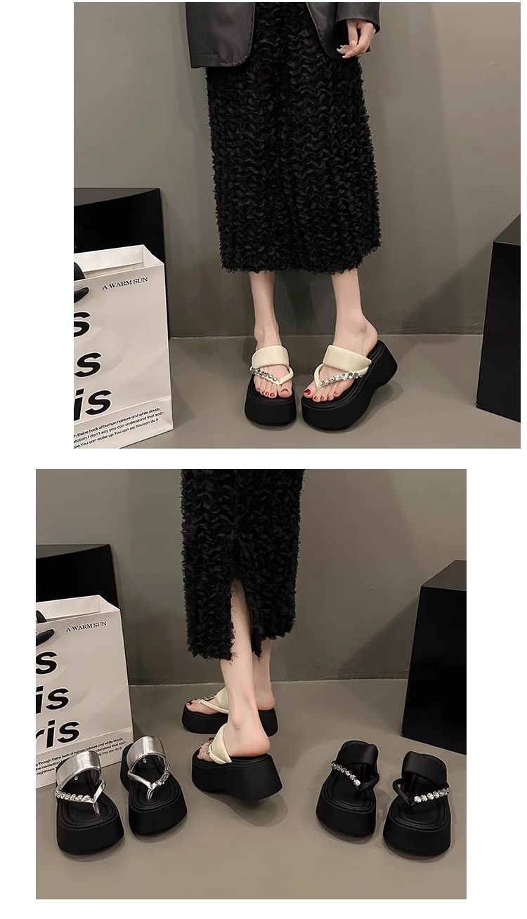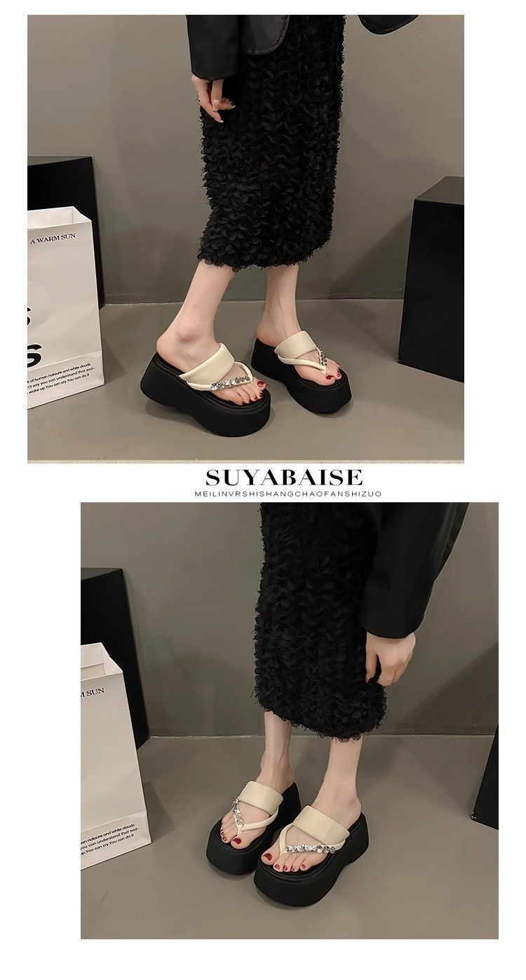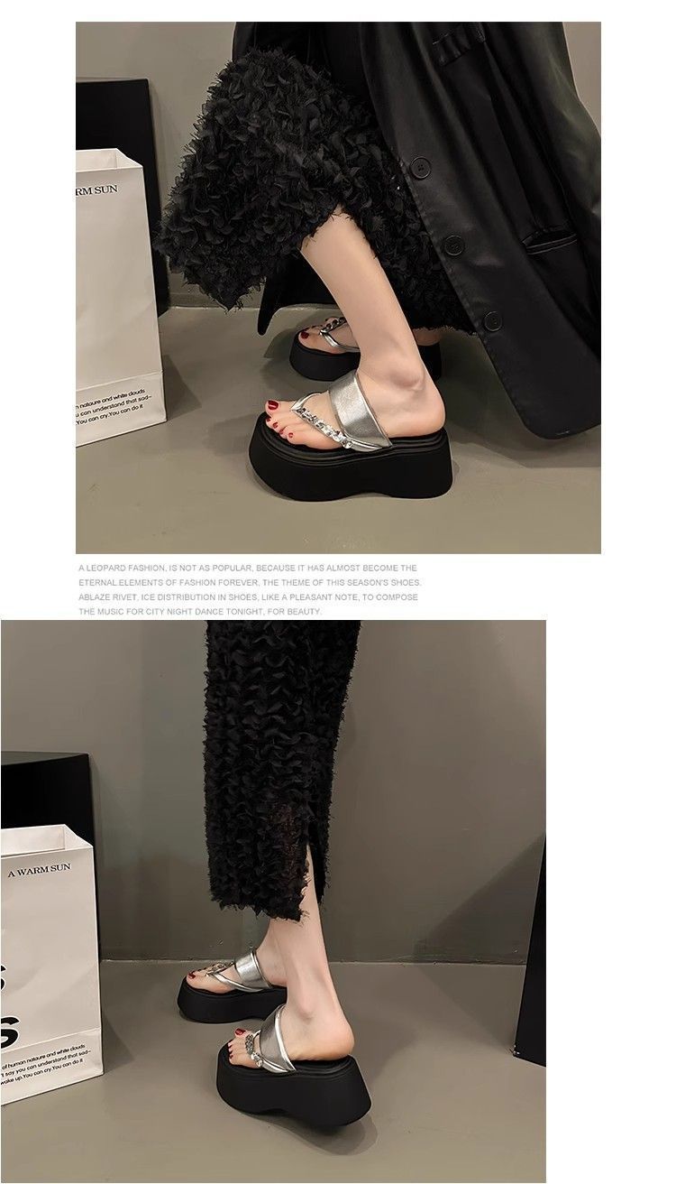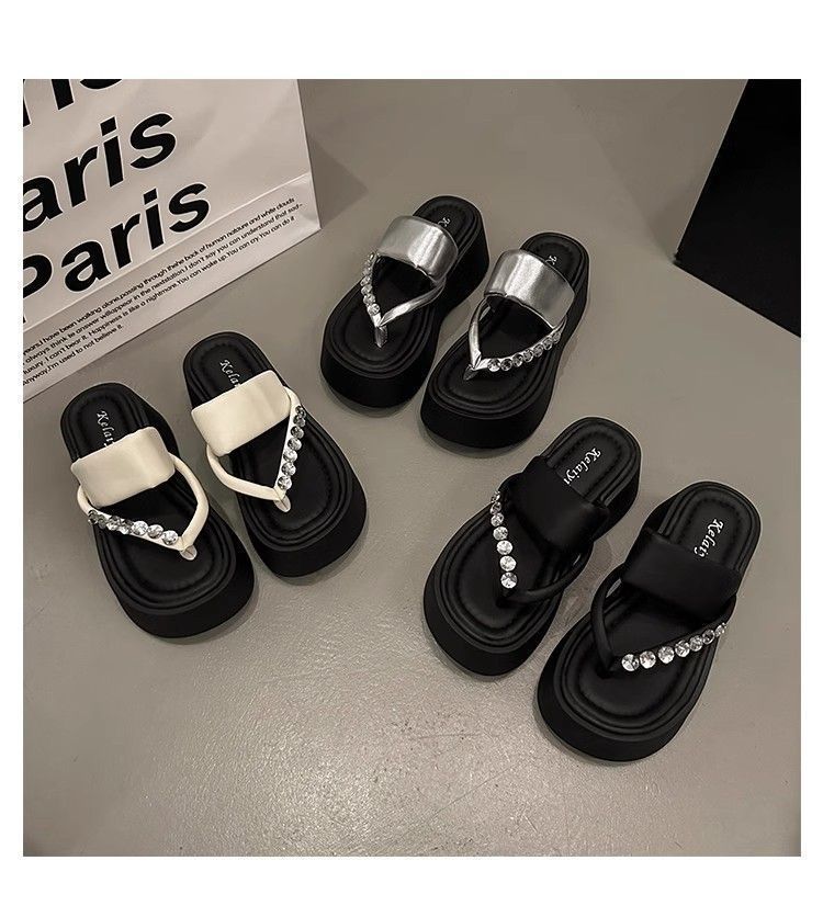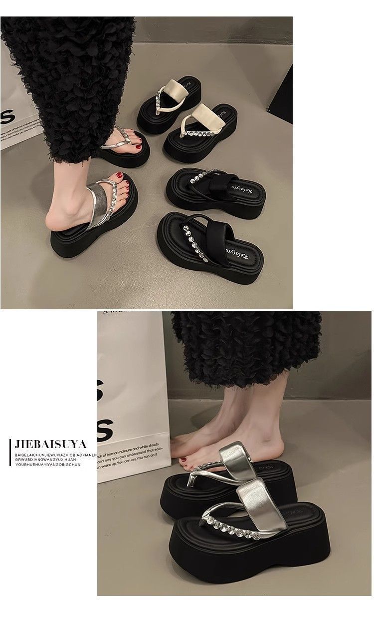 여름 아우터 2025 신상 7cm 작은 여성용 라인스톤 슬리퍼 플랫폼 밑창 다용도 키높이 샌들 트렌디스토어 가기