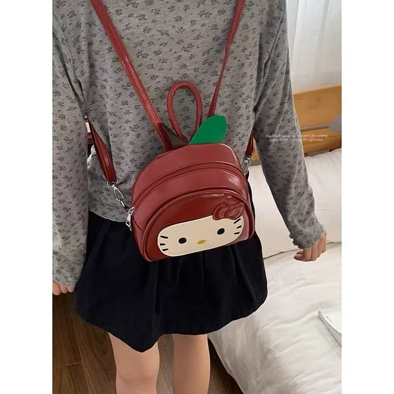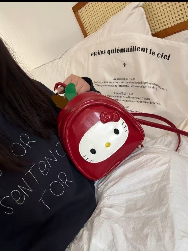 일본 Ins 귀여운 빨간 사과 Kt 고양이 배낭 캐주얼 배낭 부드러운 귀여운 달콤한 소녀 통근 작은 학교 가방