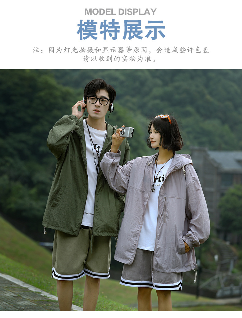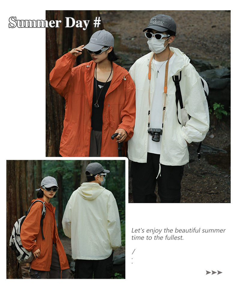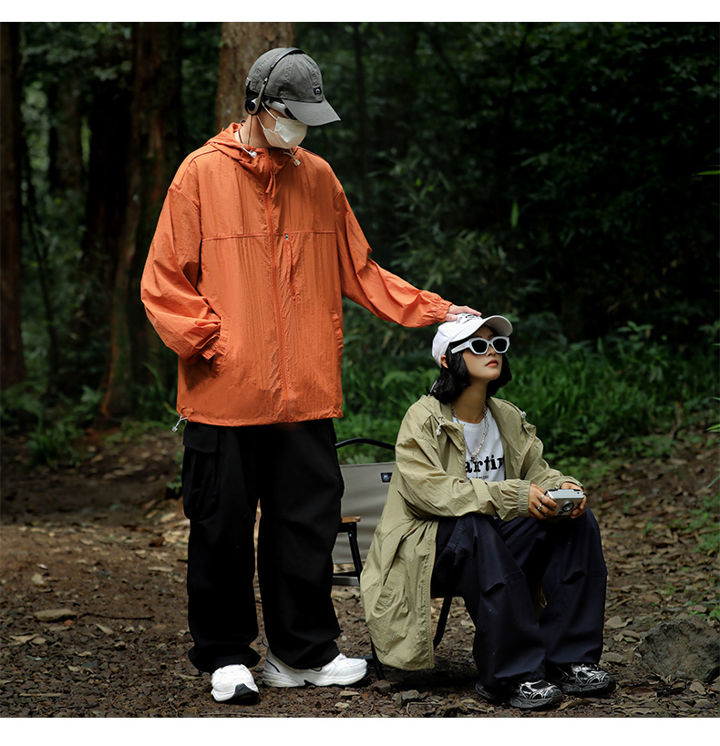 OOTD 국경 동남 아시아 태양 보호 의류 맞춤형 2 오픈 로고 OEM 남성 자외선 차단 복고풍 거리 커플스토어 가기