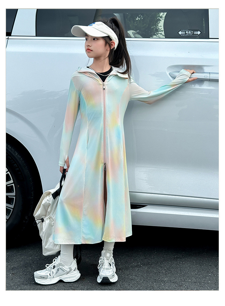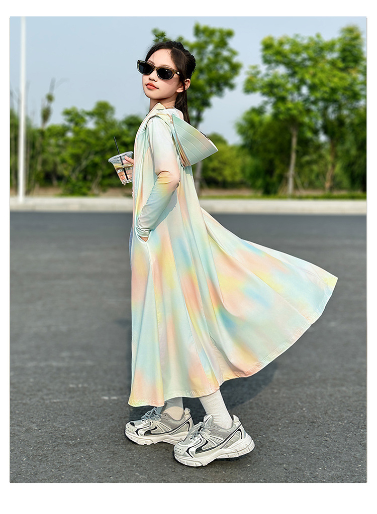 여아용 긴 자외선 차단 의류, 그라데이션 컬러 아이스 실크 자외선 차단 의류, 2025년 여름 의류, 중대형 아동 피부 의류, 통기성이 뛰어난 얇은 재킷