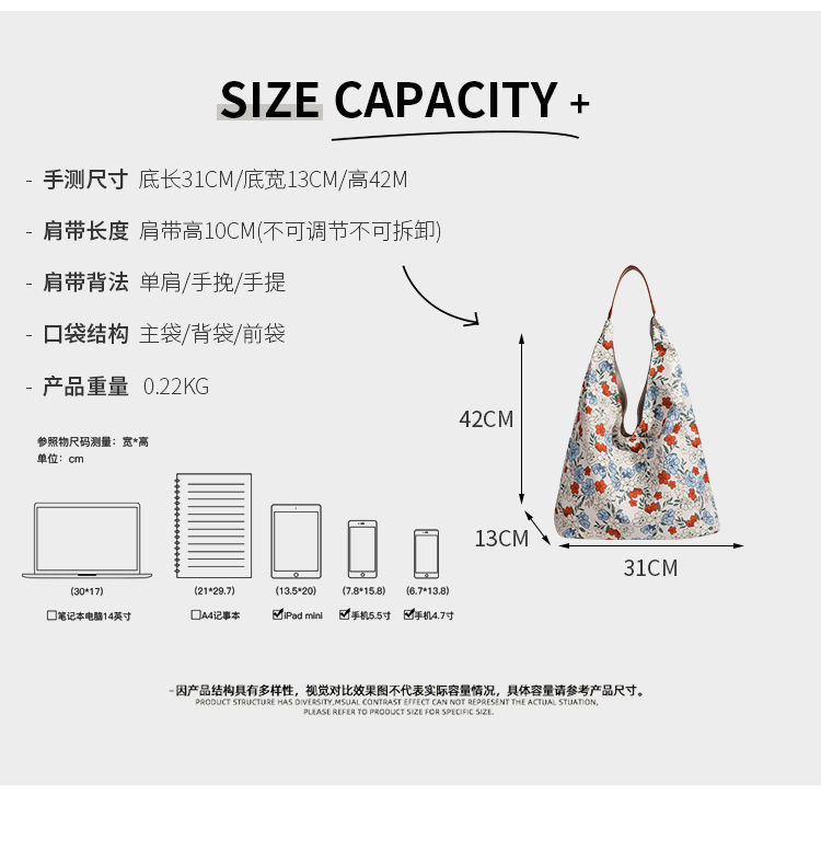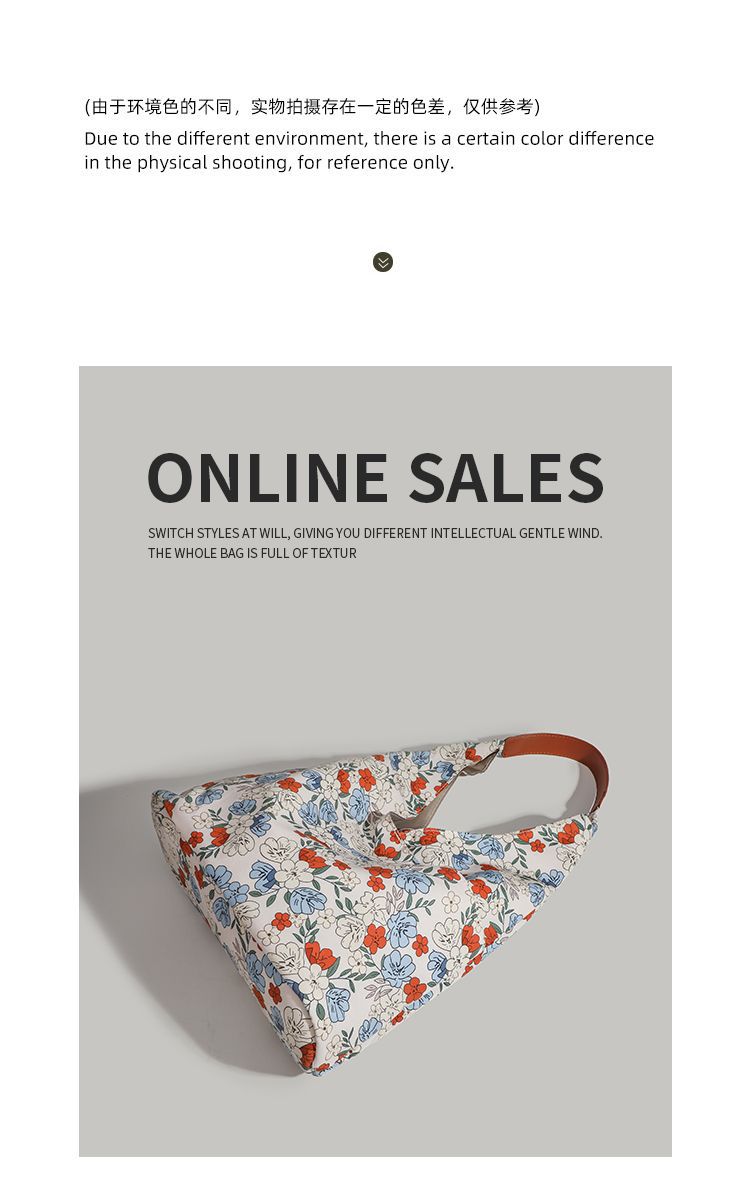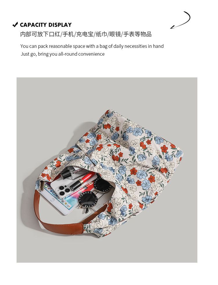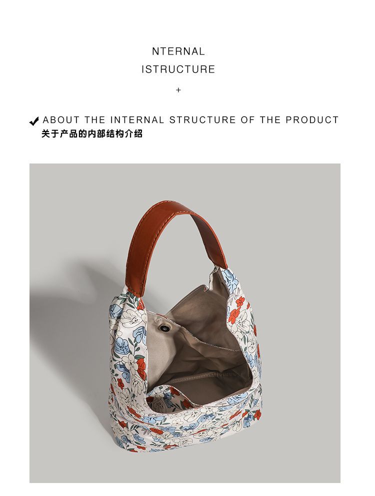 CHARHP & KEJNT 꽃 캔버스 숄더 백 2025 새로운 홍콩 스타일 휴대용 언더암 가방 대용량 토트 백스토어 가기