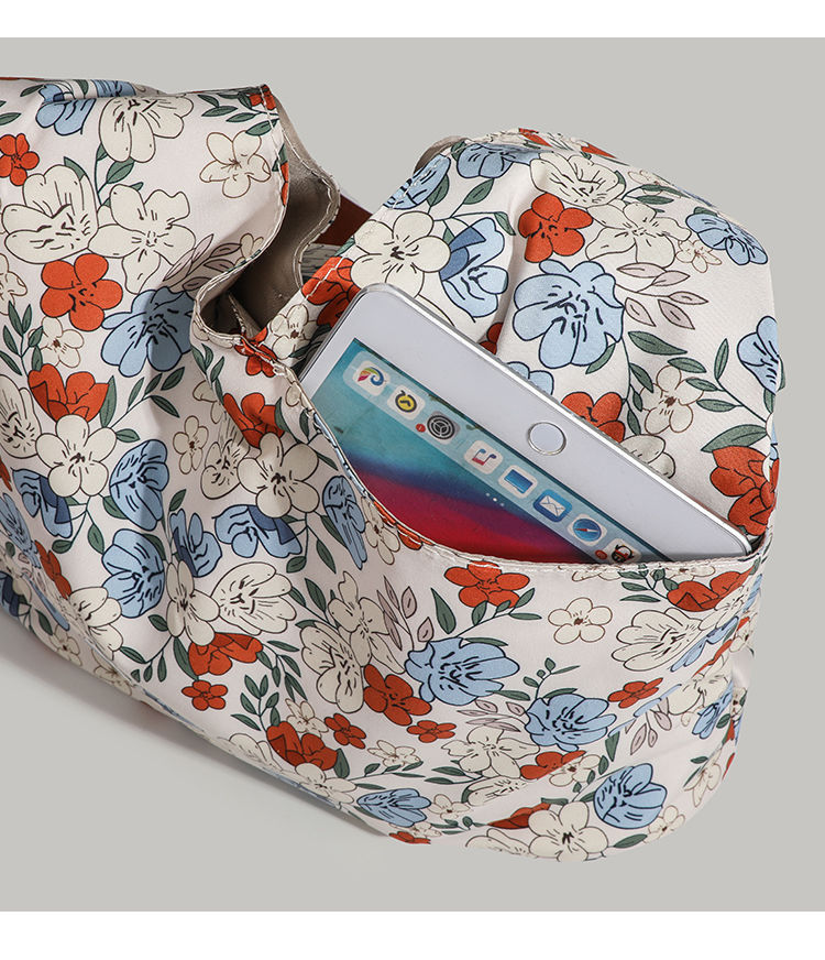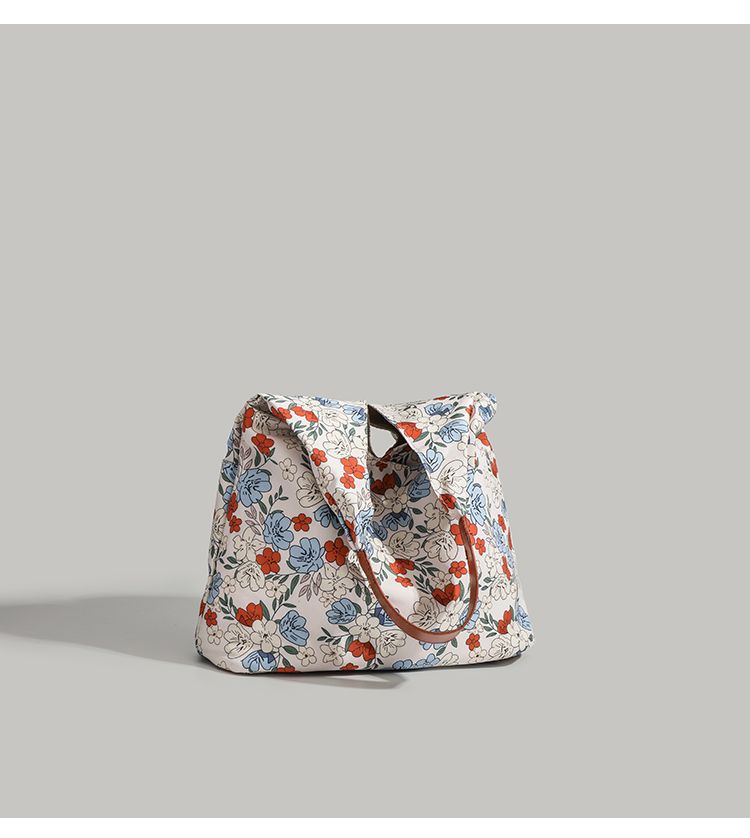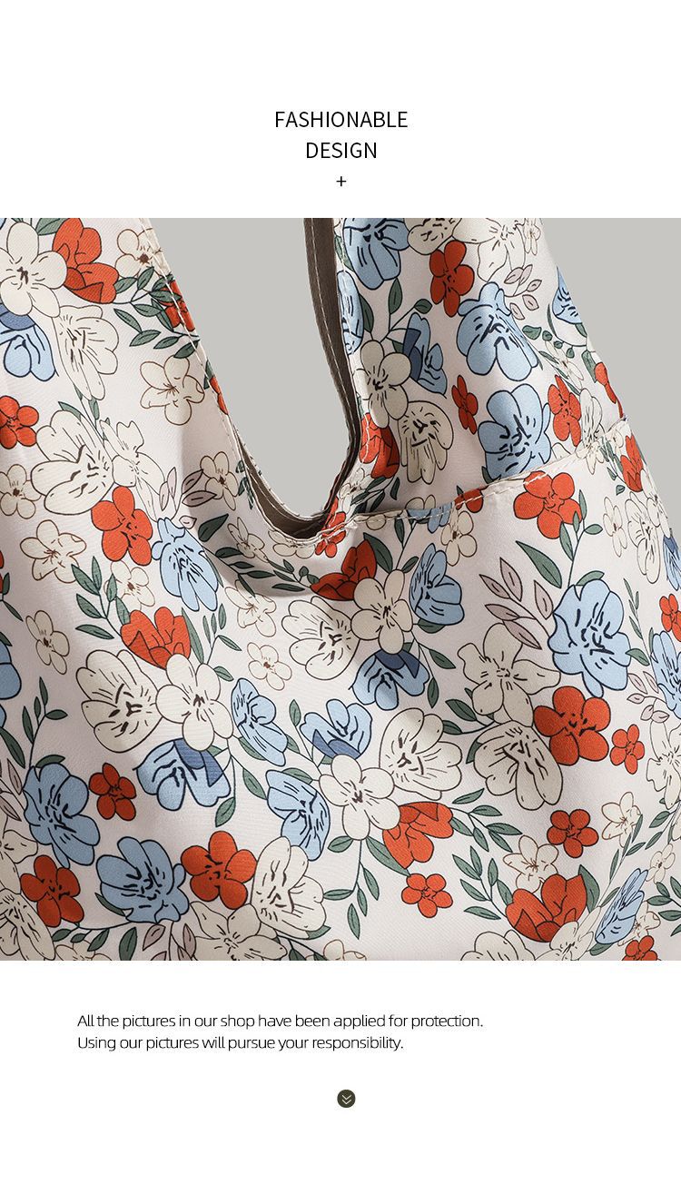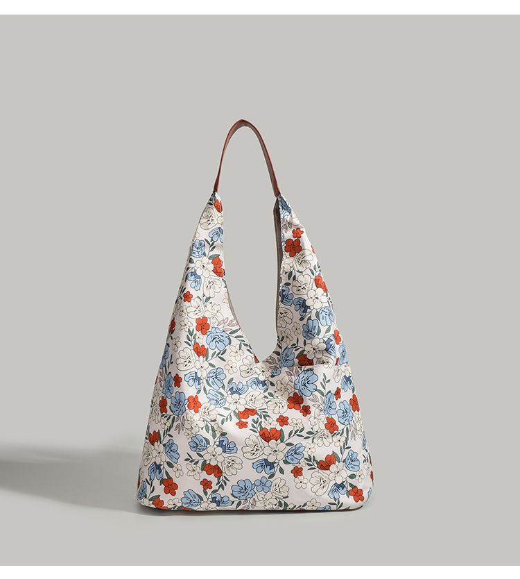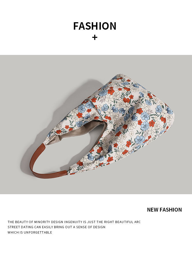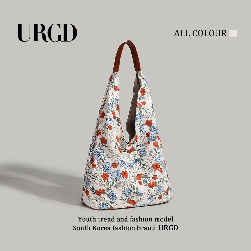 CHARHP & KEJNT 꽃 캔버스 숄더 백 2025 새로운 홍콩 스타일 휴대용 언더암 가방 대용량 토트 백