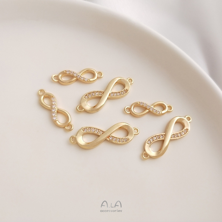 색상 보존 14K 금도금 지르콘 8자형 더블 펜던트 액세서리 무한 사랑 8자형 버클 DIY 팔찌 쥬얼리 커넥터