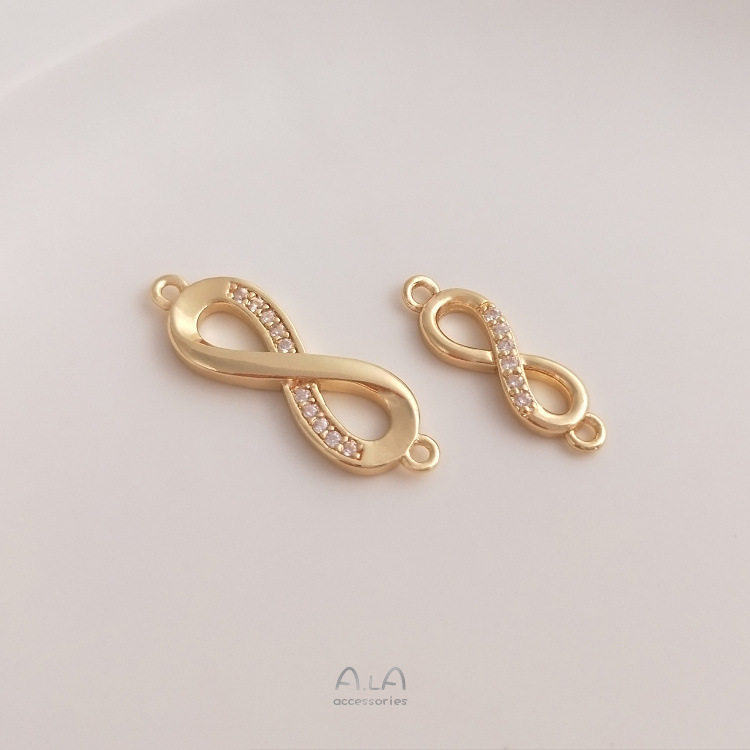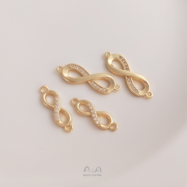 색상 보존 14K 금도금 지르콘 8자형 더블 펜던트 액세서리 무한 사랑 8자형 버클 DIY 팔찌 쥬얼리 커넥터스토어 가기