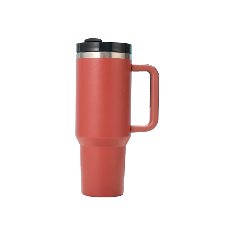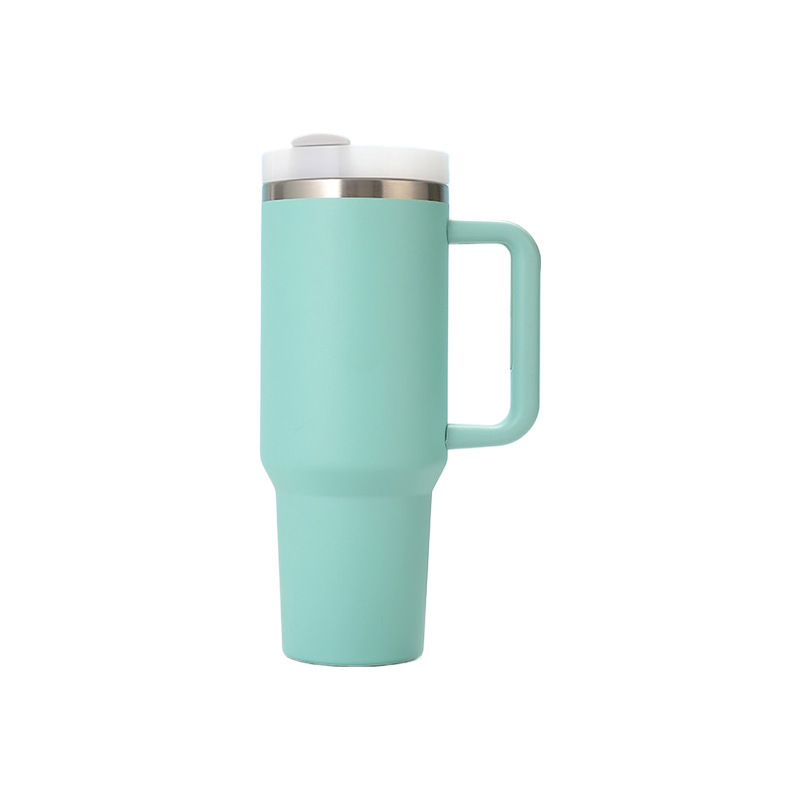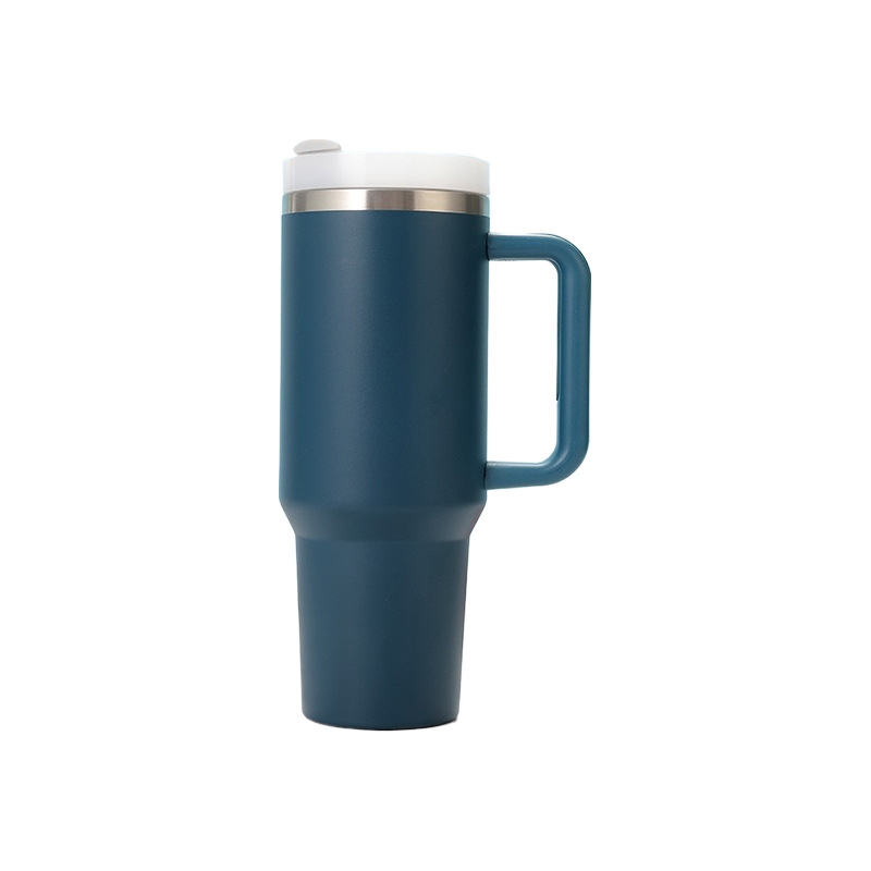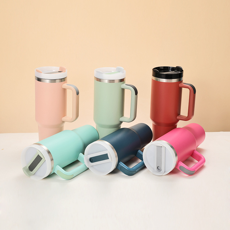 40온스 온도 표시 차량용 컵, 손잡이가 있는 이중층 휴대용 아이스컵, 빨대컵, 스테인리스 보온컵