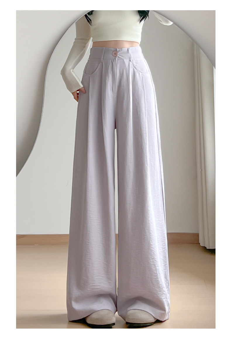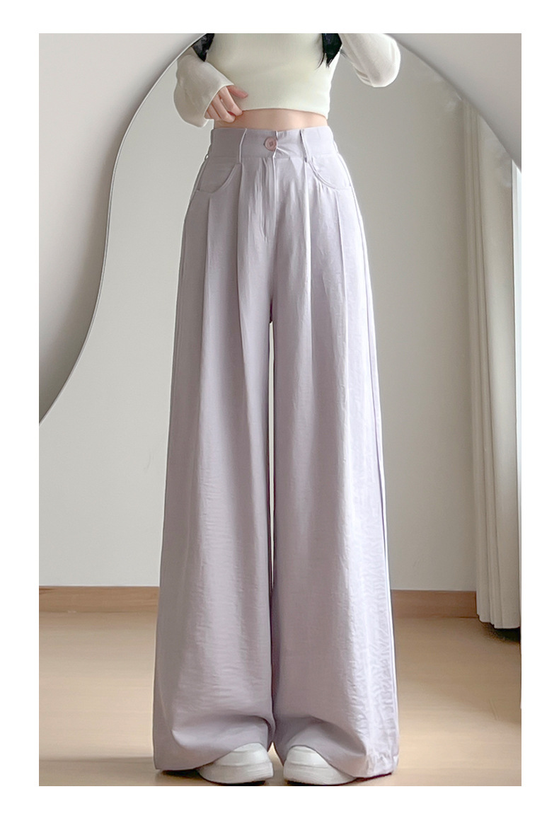 회색 아이스 실크 밀크 푸 야마모토 바지 여성 여름 얇은 2025 새로운 높은 허리 느슨한 슬리밍 편안한 세트 바지
