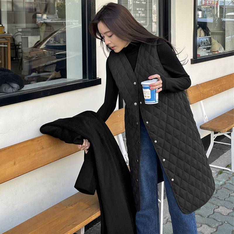 싱글 브레스트 다목적 따뜻한 퀼트 코튼 조끼 재킷 2025 가을, 겨울 새로운 작은 민소매 중간 길이 코튼 조끼 여성용스토어 가기