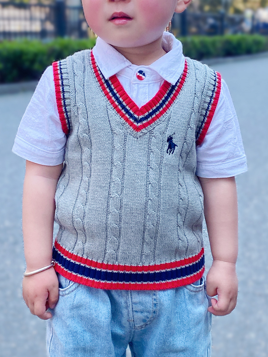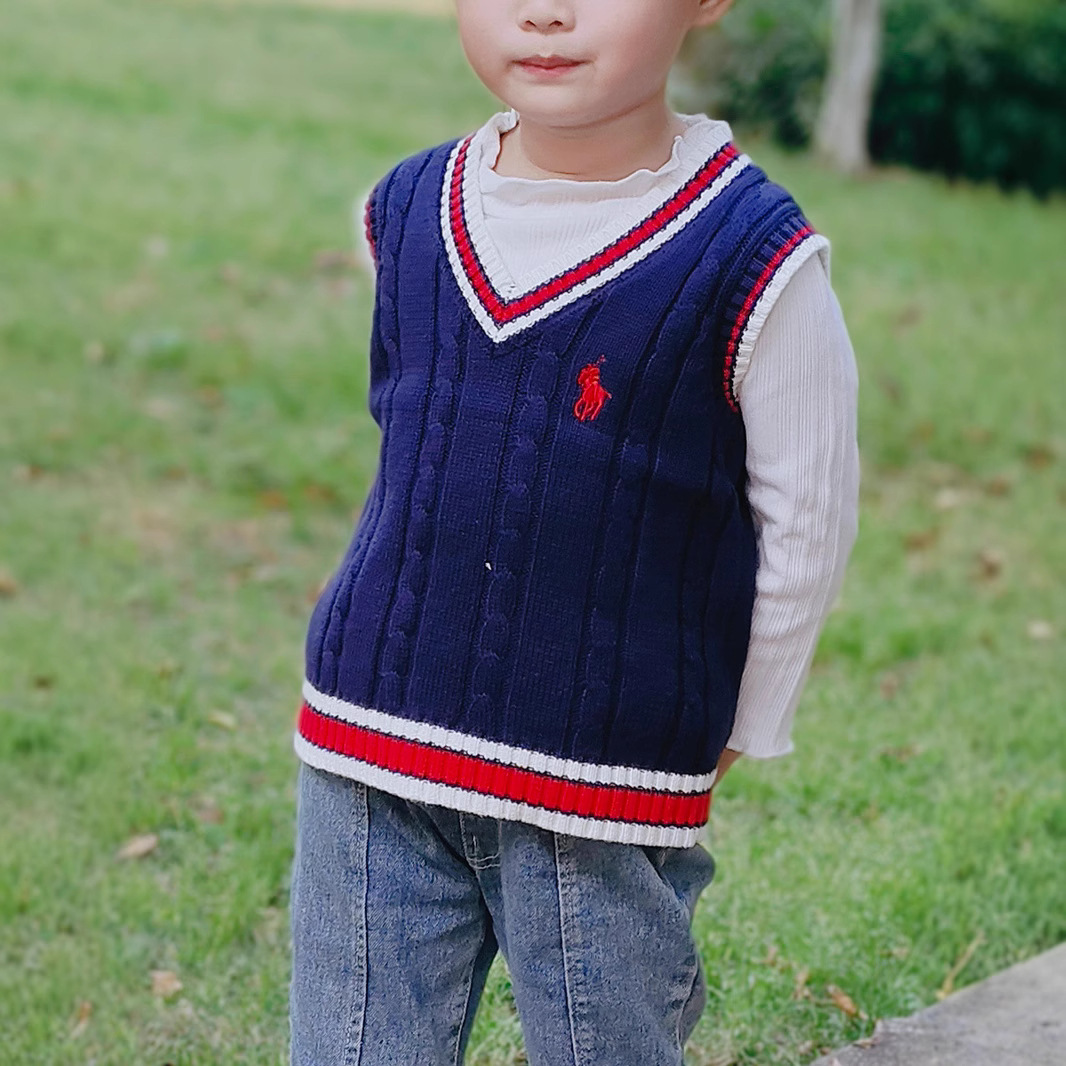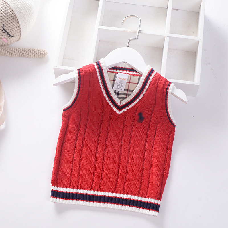 봄과 가을 어린이 순수 코튼 스웨터 조끼 클래식 유럽과 미국의 민소매 v 넥 스웨터 조끼 아동 의류 도매스토어 가기