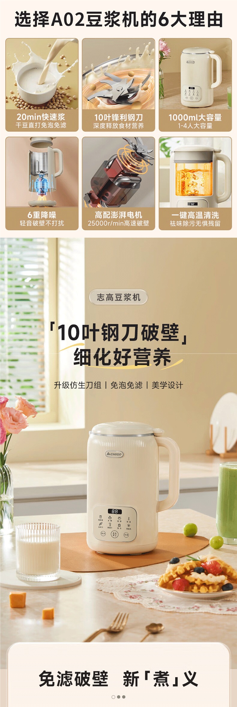 소형 두유기, 전자동 조리기, 필터 프리, 다기능, 잔류물 프리, 주스 프리, 벽 파괴기, 가정용 Chigo 조리기스토어 가기