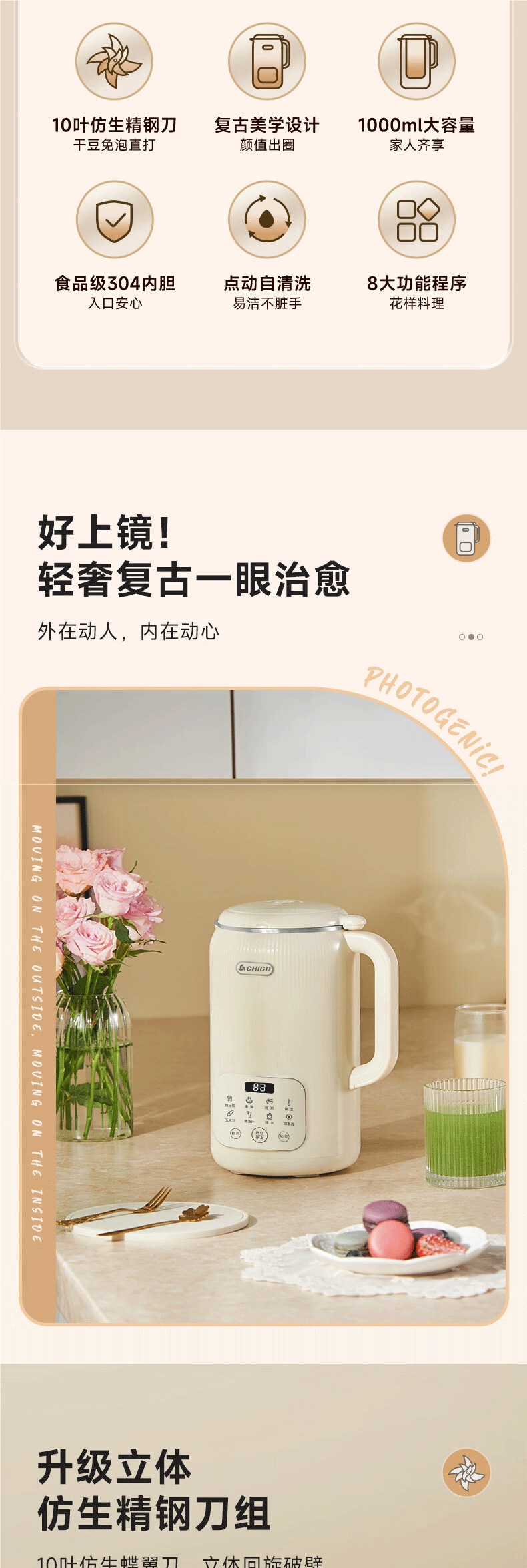 • 1.0L [10날 스테인리스 칼, 필터가 없고 섬세함] 8가지 주요 기능