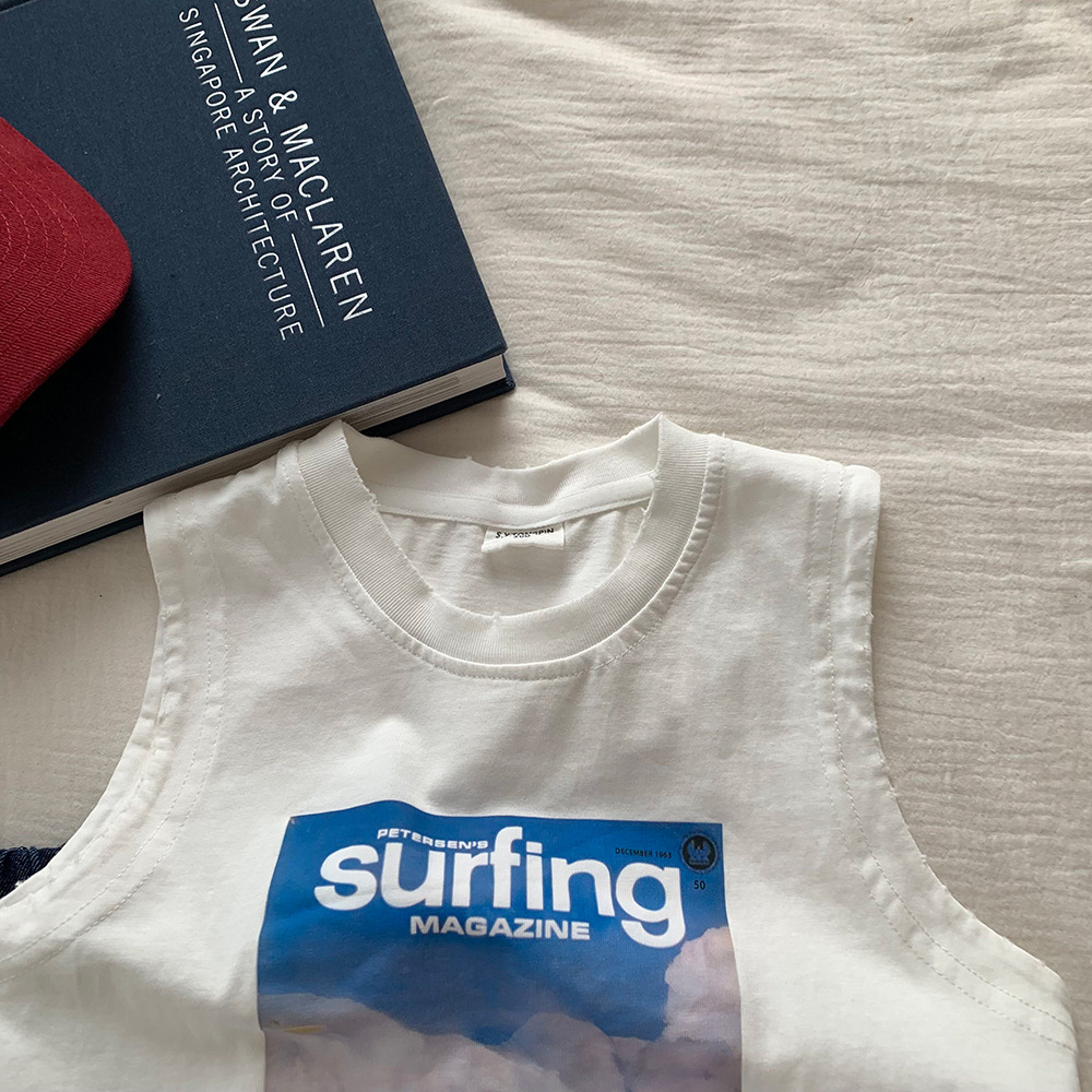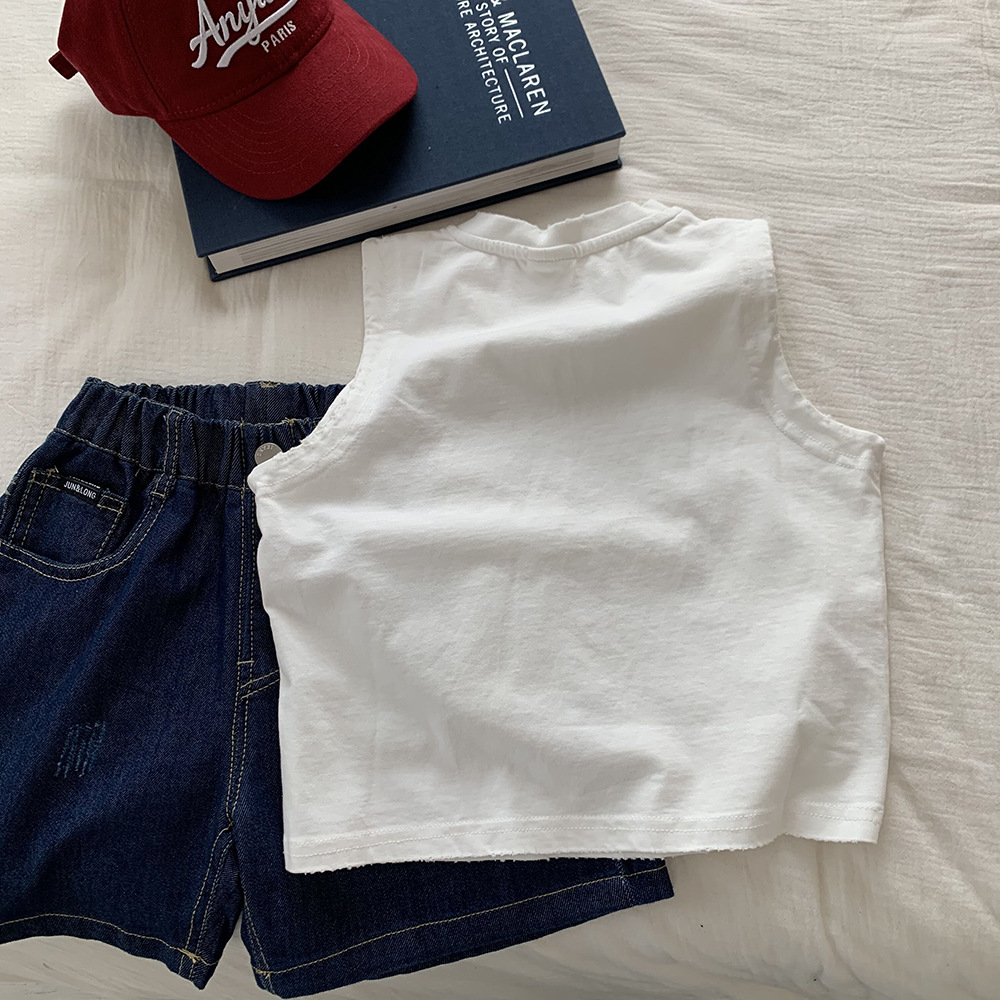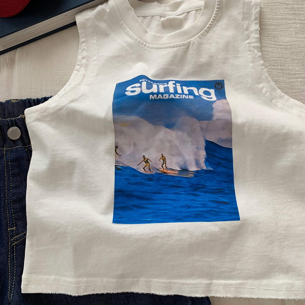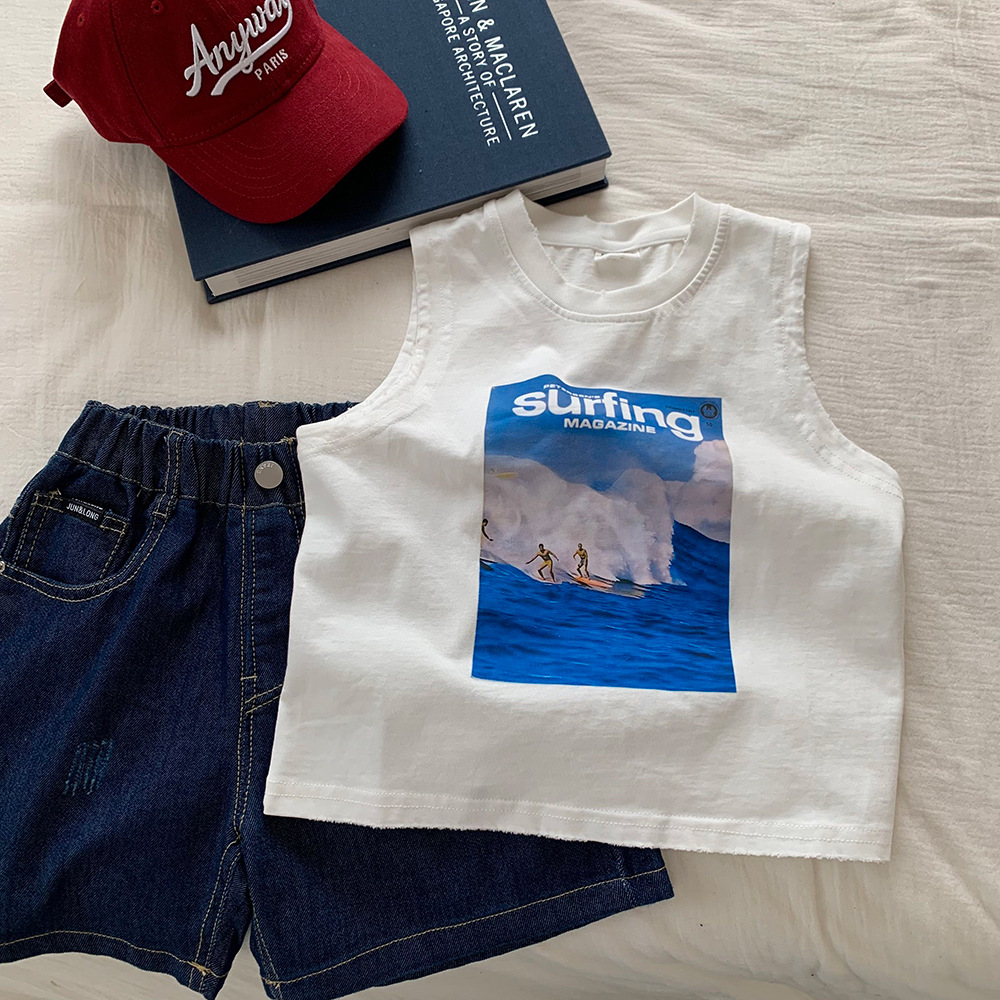 남성용 아동복 민소매 티셔츠 2025 새로운 여름 어린이 캐주얼 올 매치 인쇄 아기의 외복 조끼 탑 트렌디 T스토어 가기