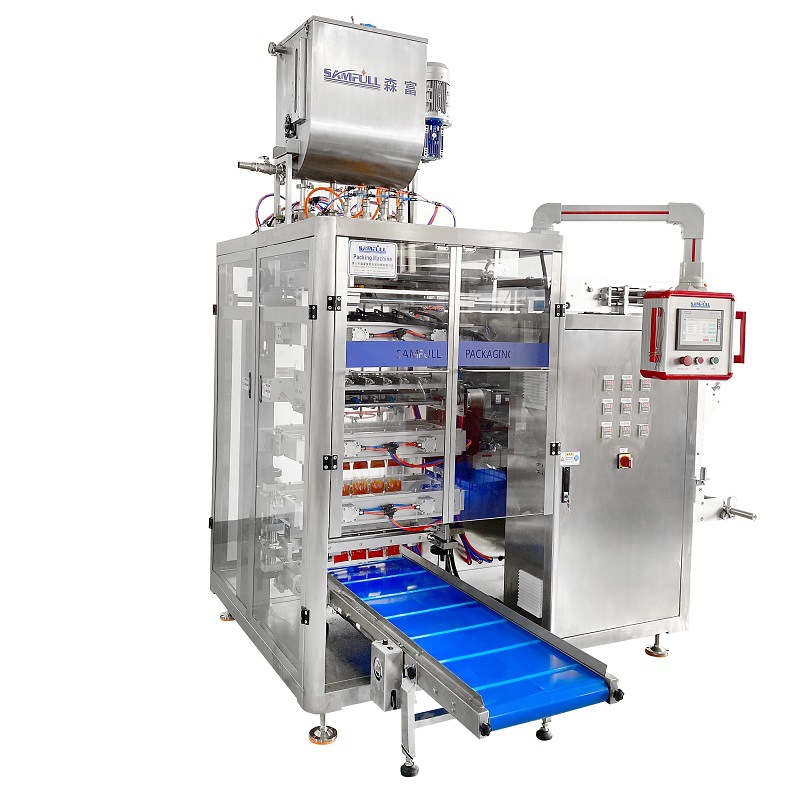 작은 가방 요구르트 우유 액체 포장 기계 4 면 밀봉 소스 페이스트 충전 기계 농축 음료 포장 장비
