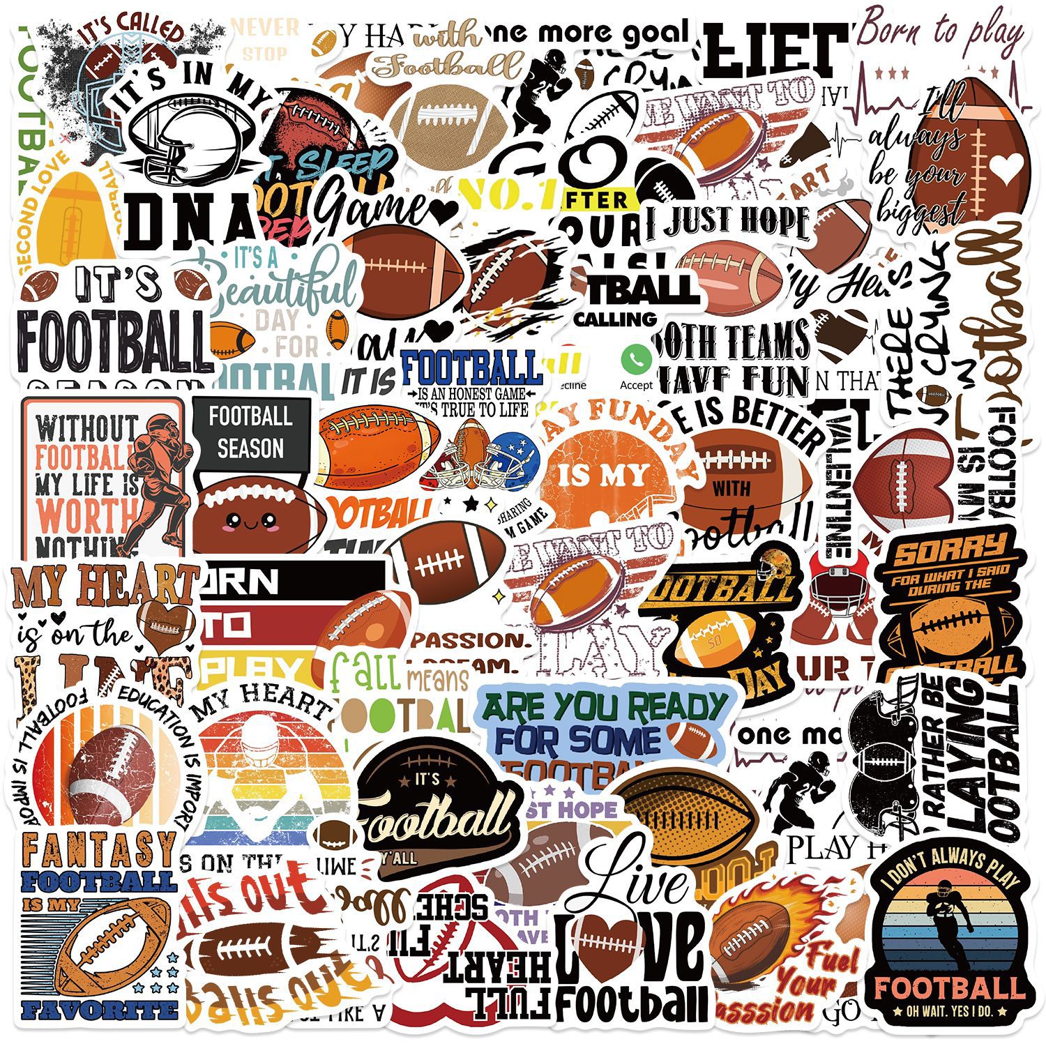 50/2 미식 축구 낙서 스티커 창조적 인 DIY 수하물 스쿠터 노트북 워터 컵 스티커