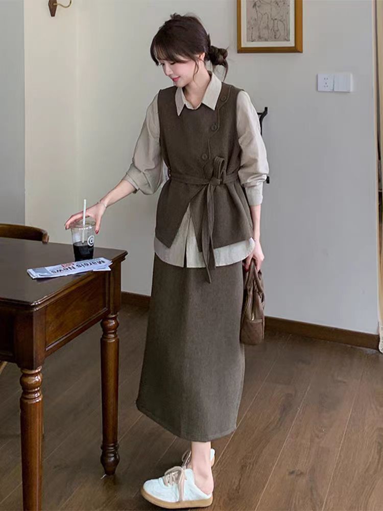 • 셔츠 + 조끼 + 벨트 + 스커트 (슈트)